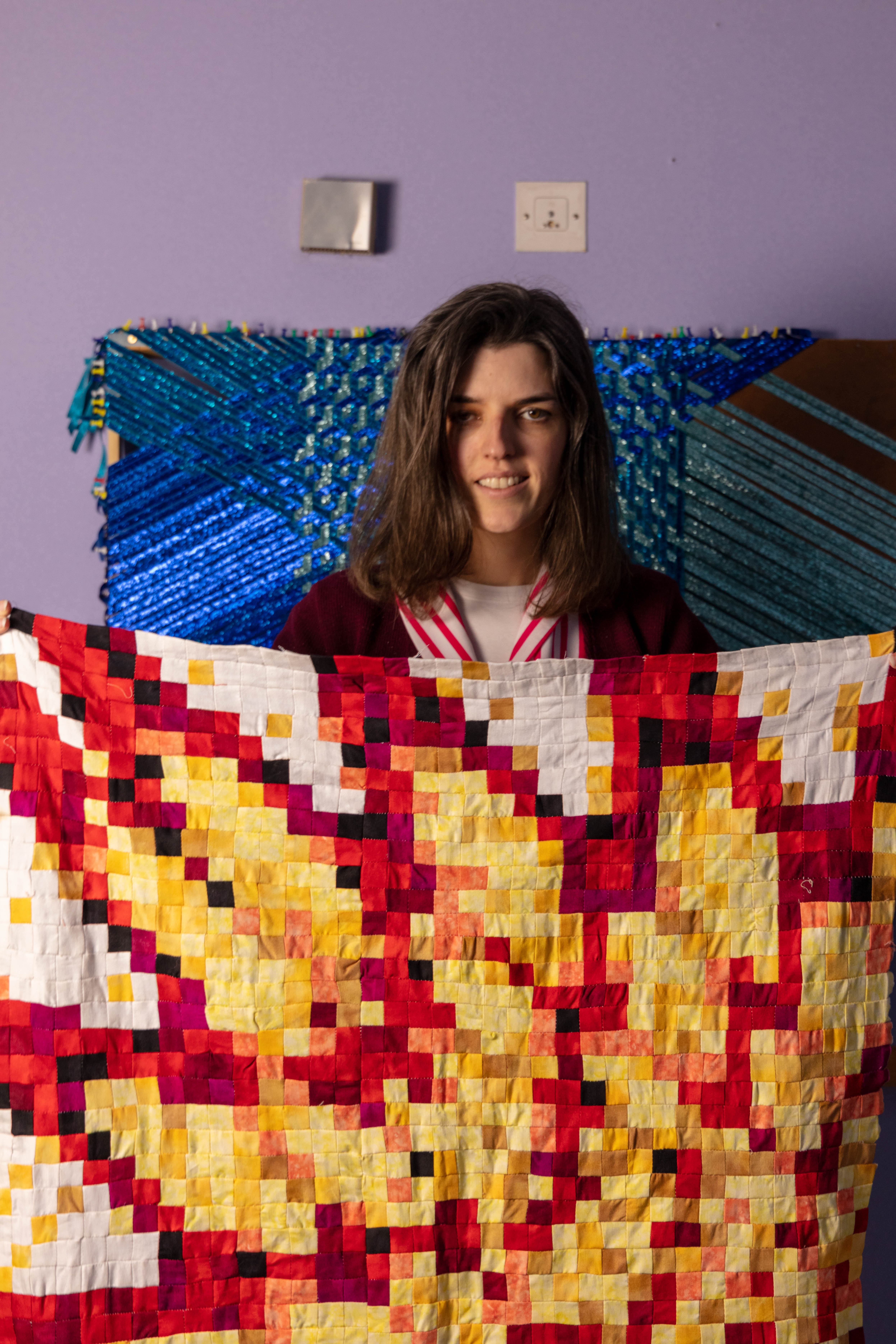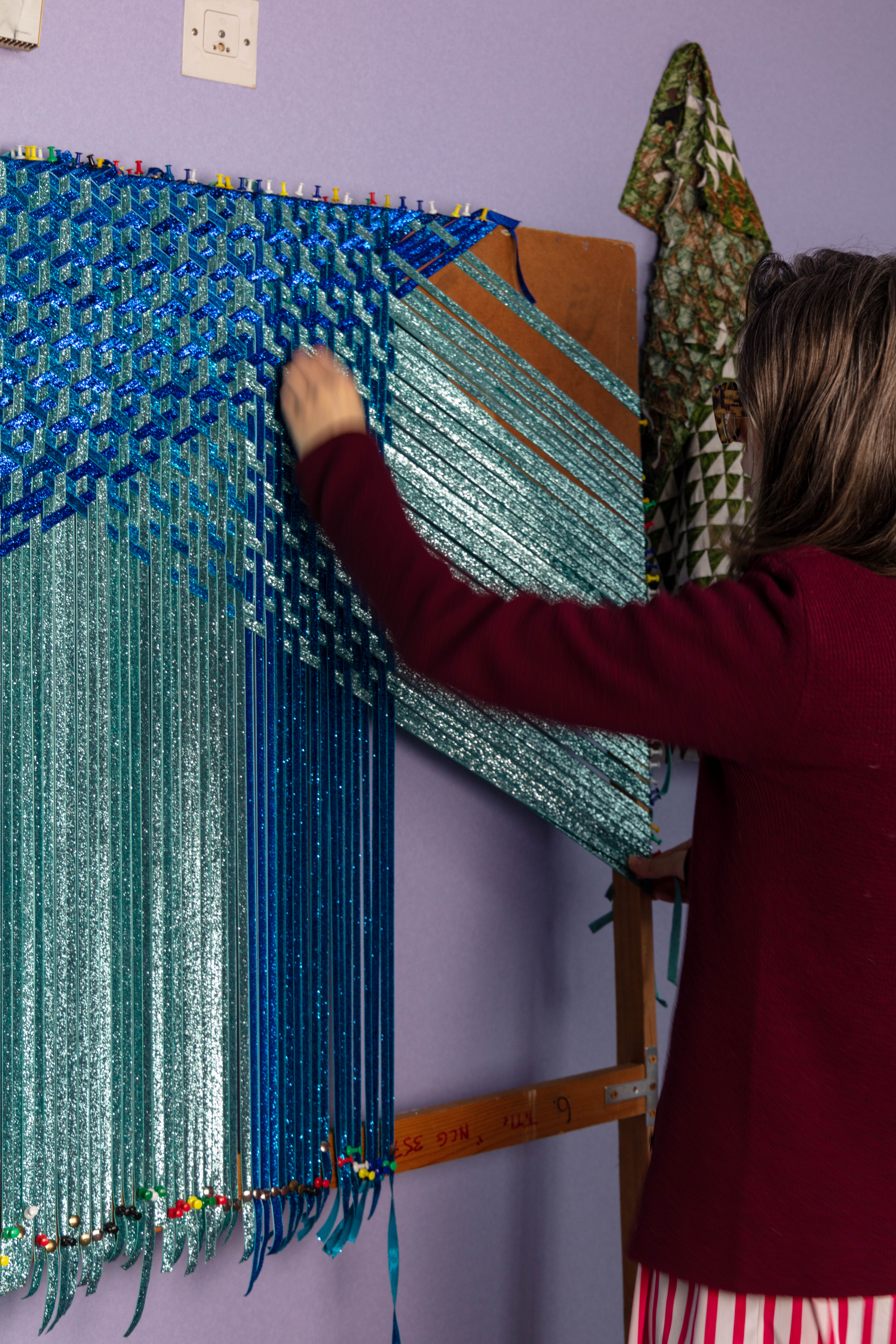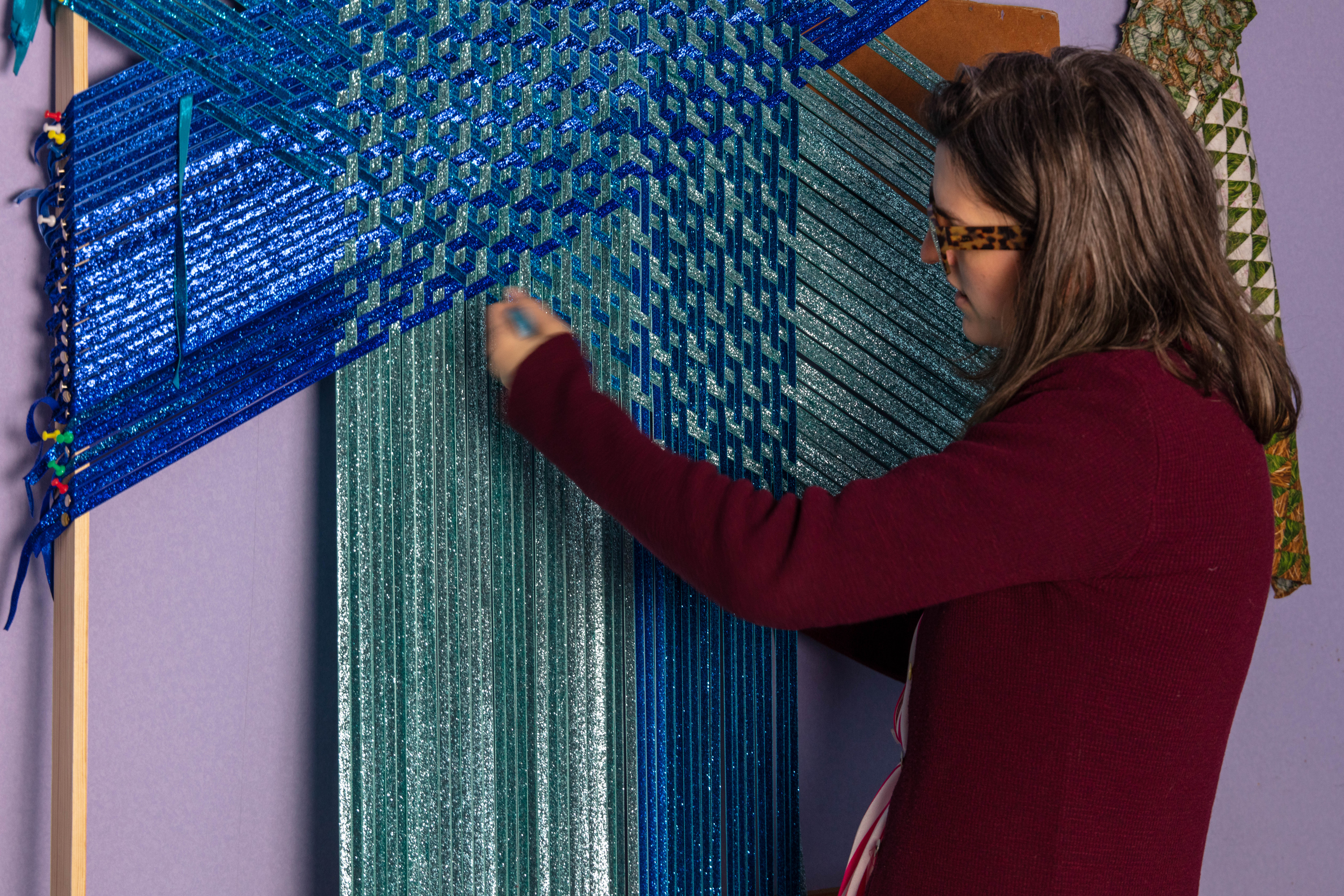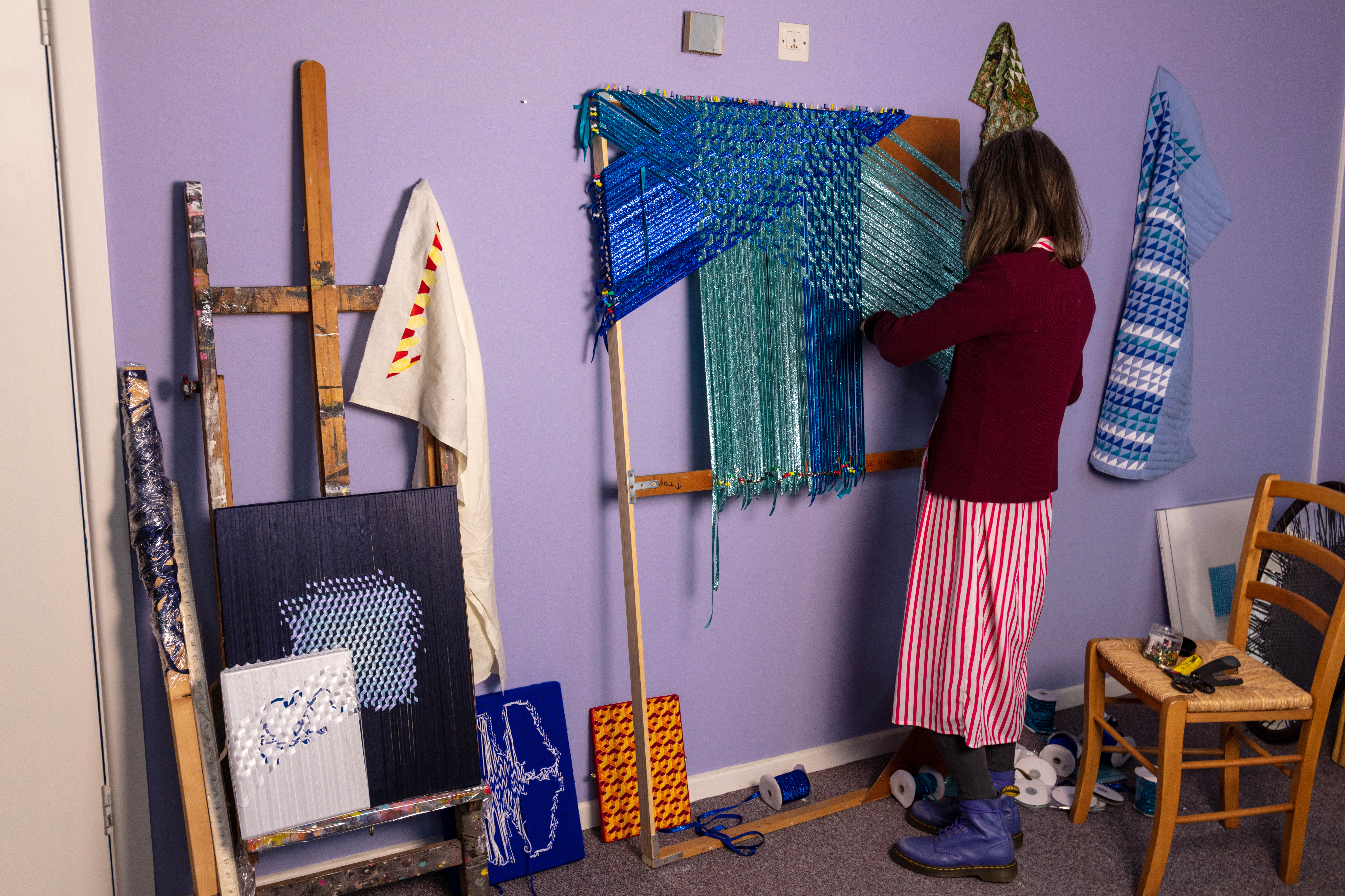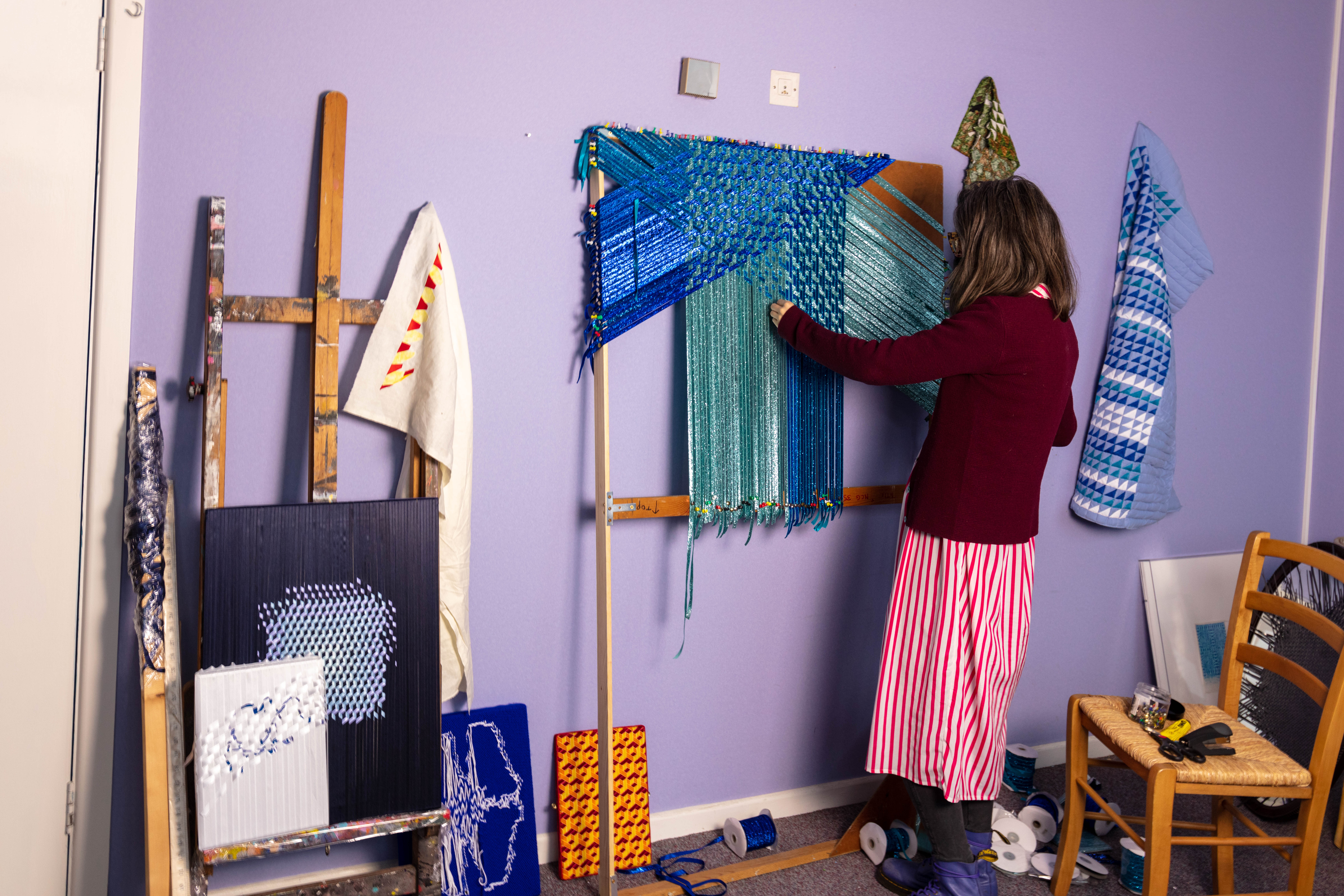 Grace has her studio at the Queens Street Studio. She looks at intensive craft processes such as weaving and sewing exploring self-reflexive subject, expanding an understanding of experience , drawing and tactility, through form and content.
