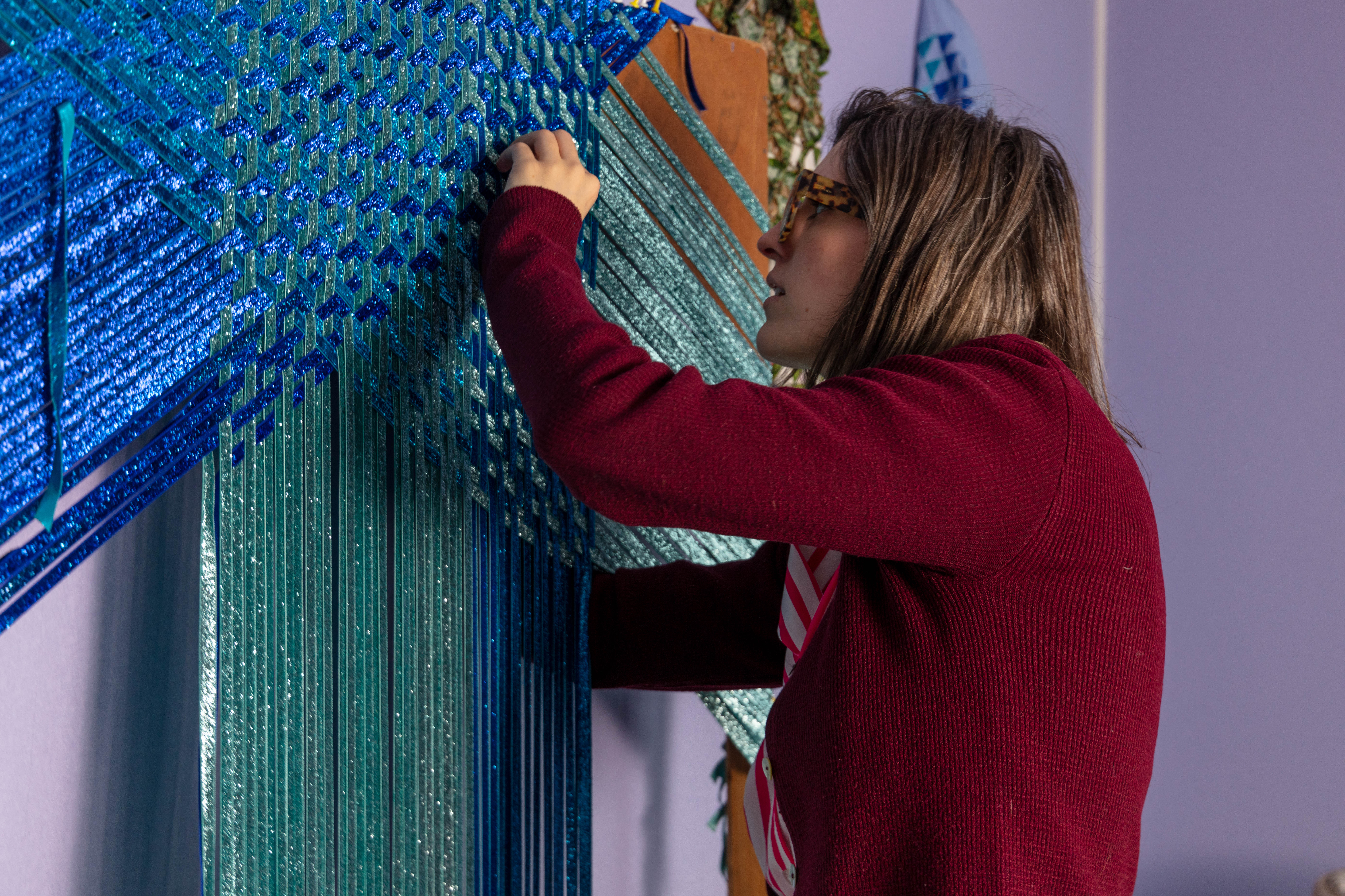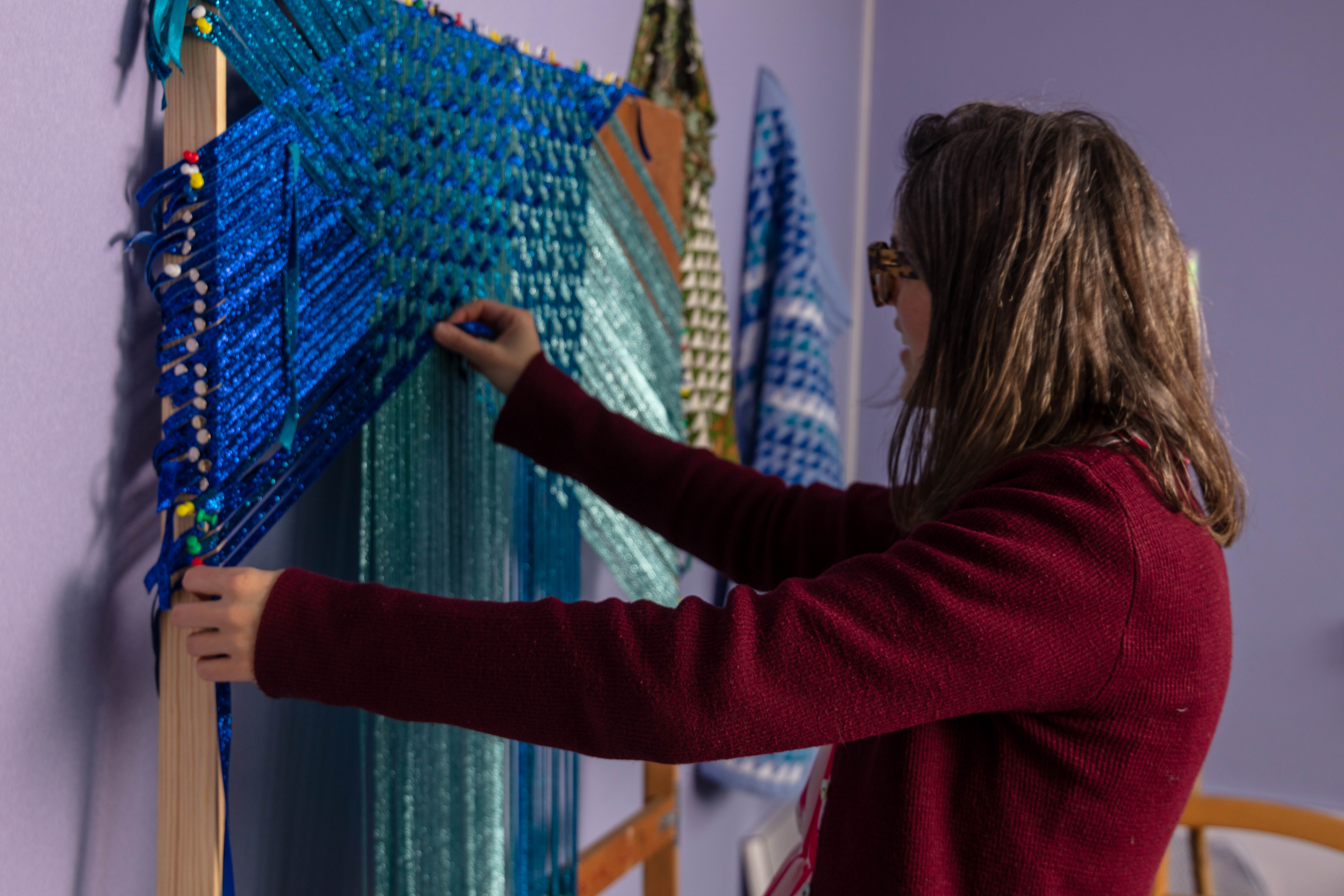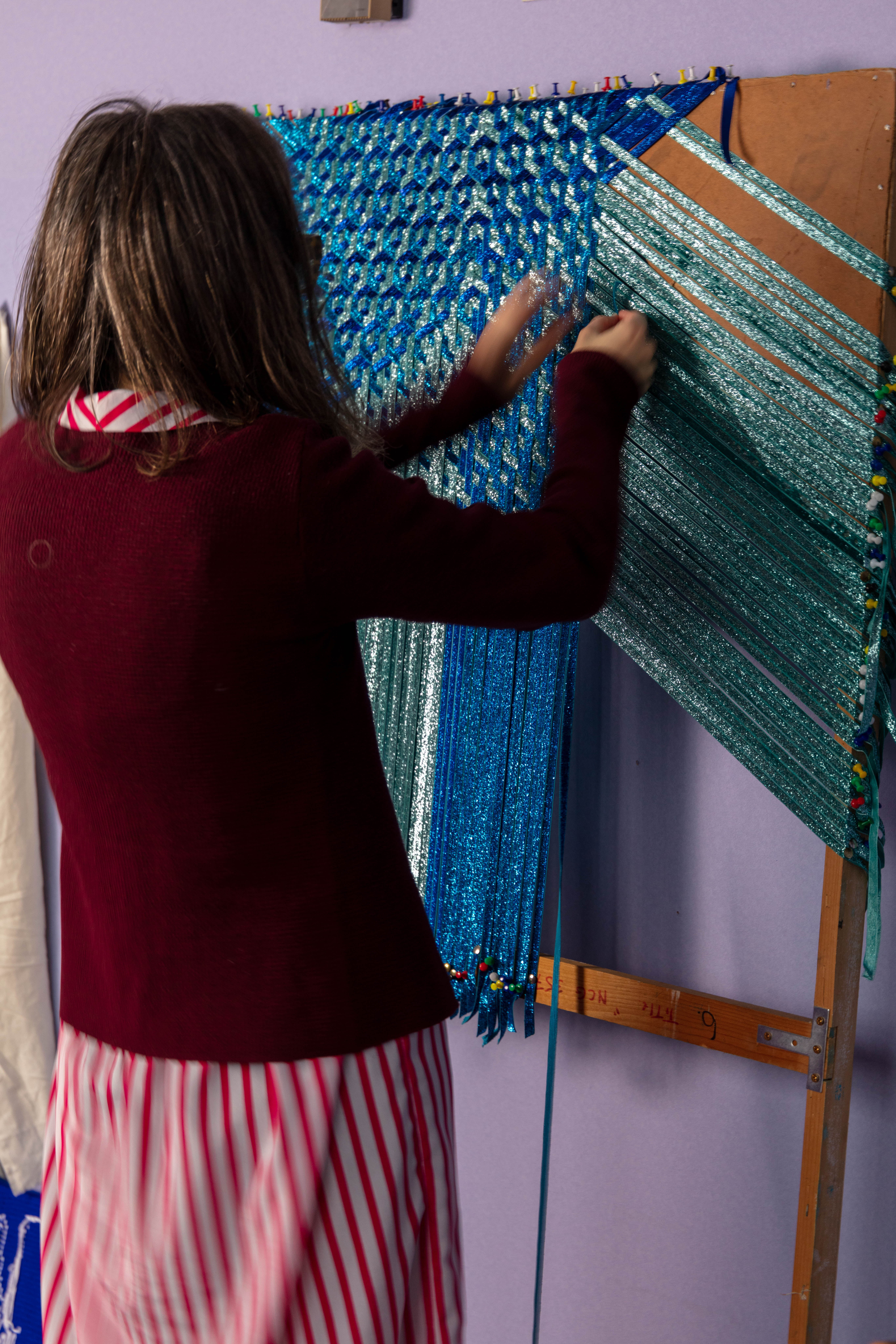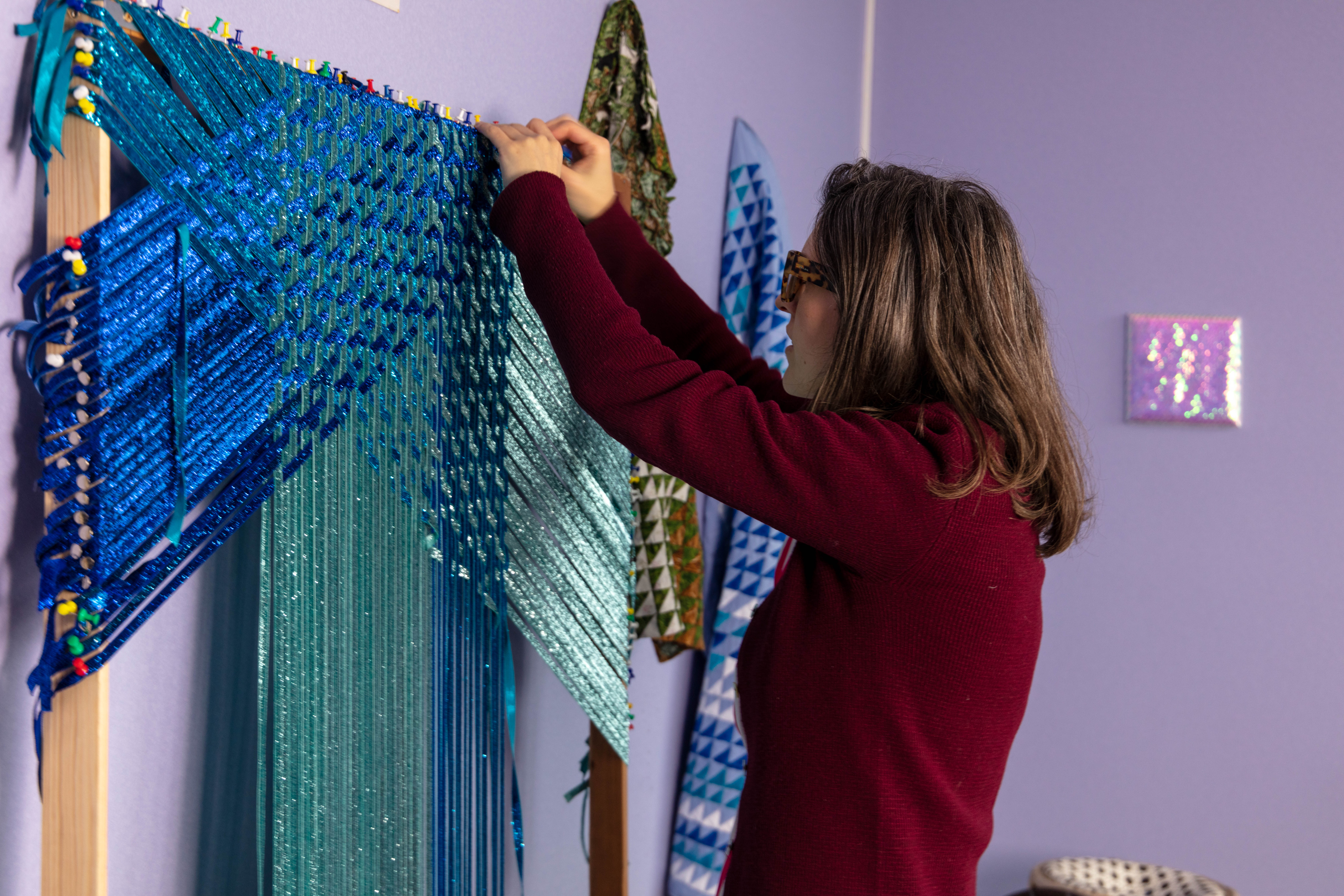 Grace has her studio at the Queens Street Studio. She looks at intensive craft processes such as weaving and sewing exploring self-reflexive subject, expanding an understanding of experience , drawing and tactility, through form and content.