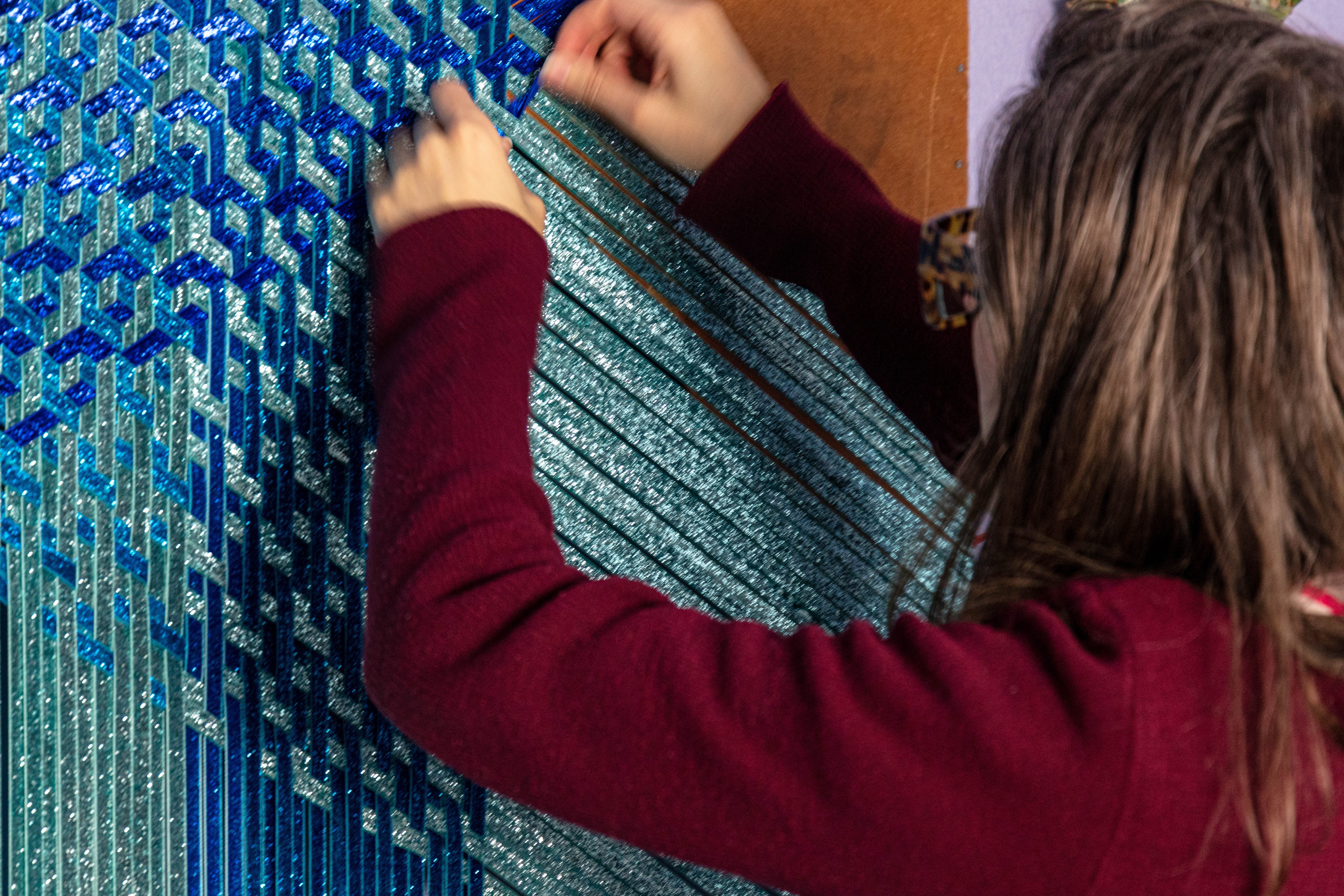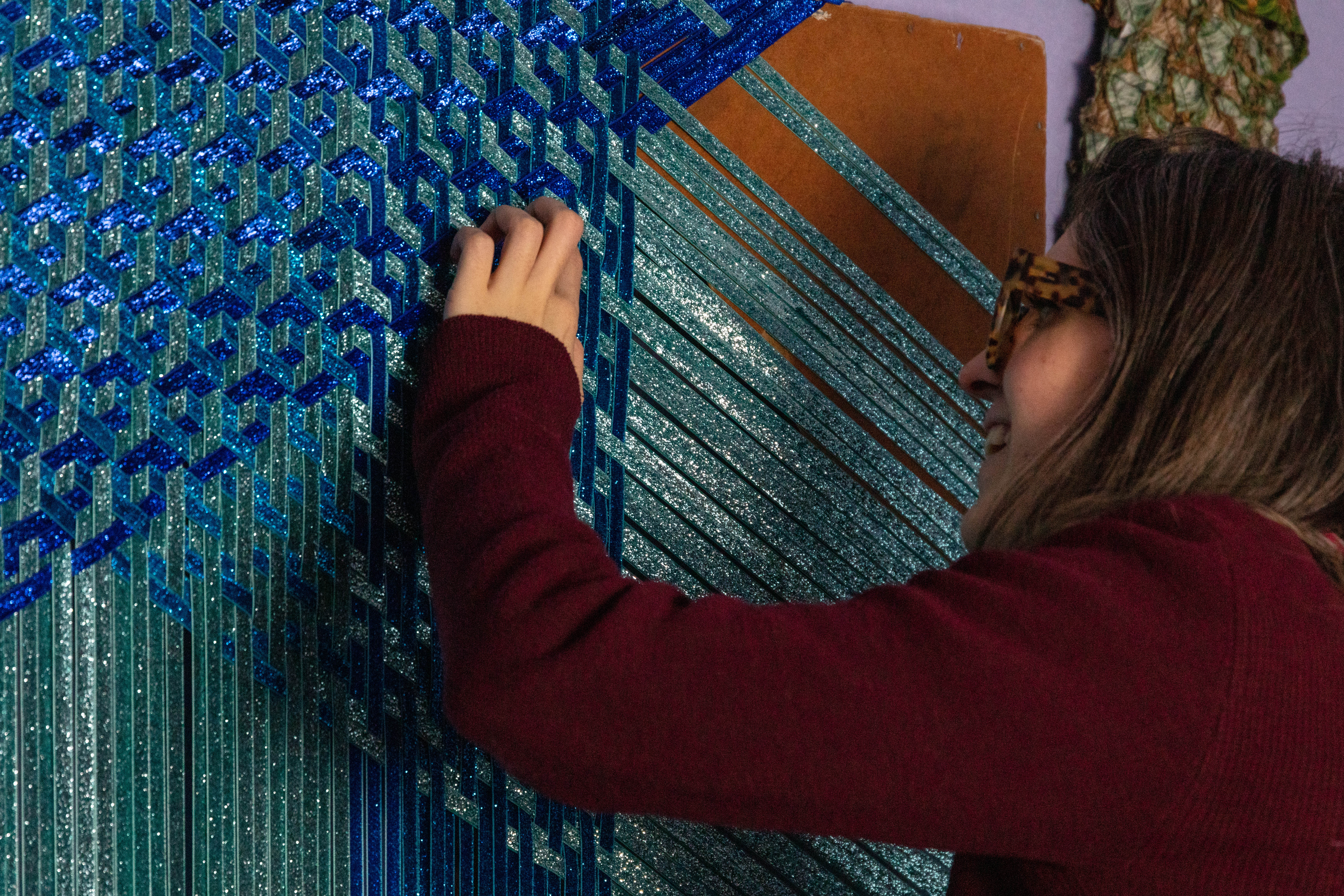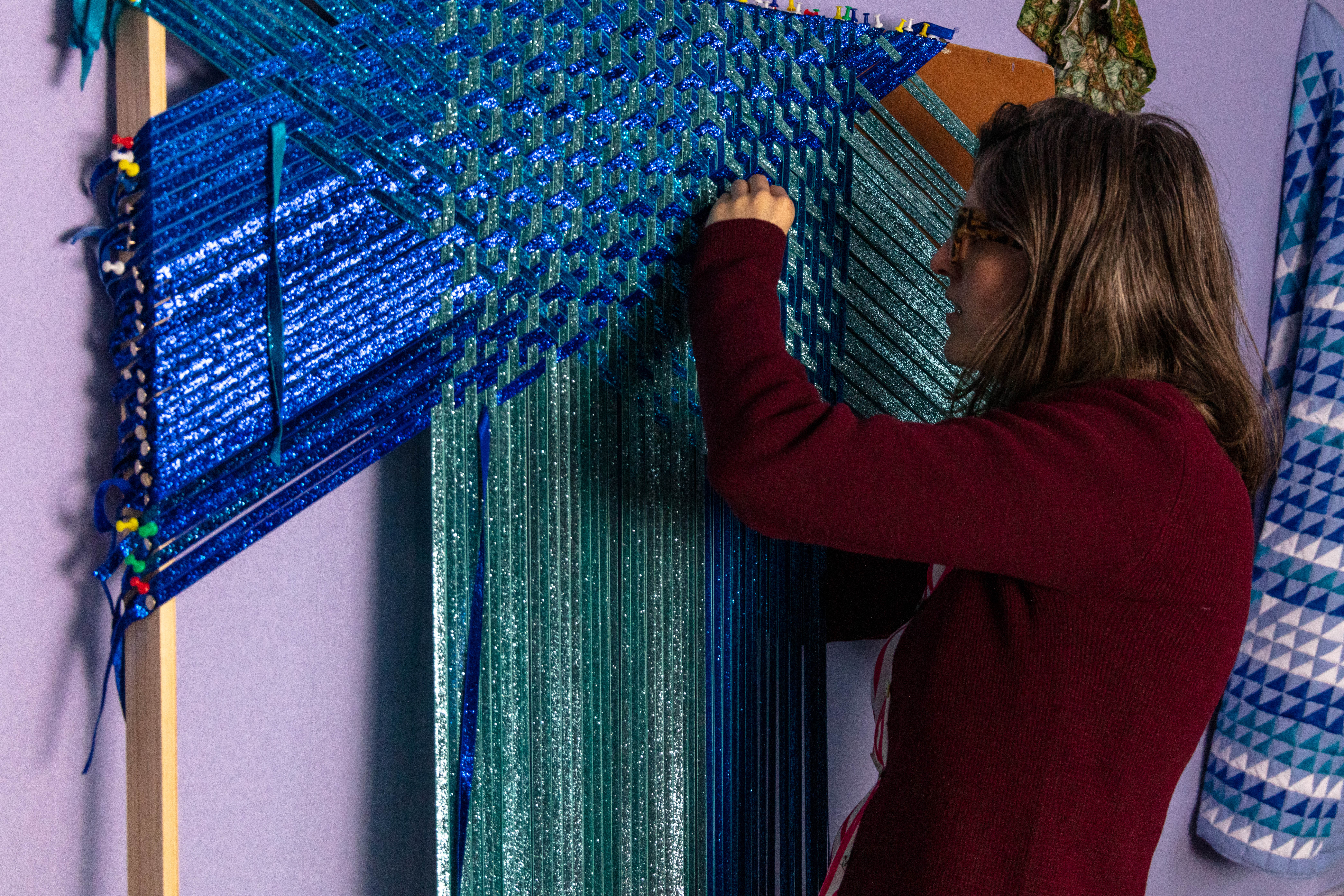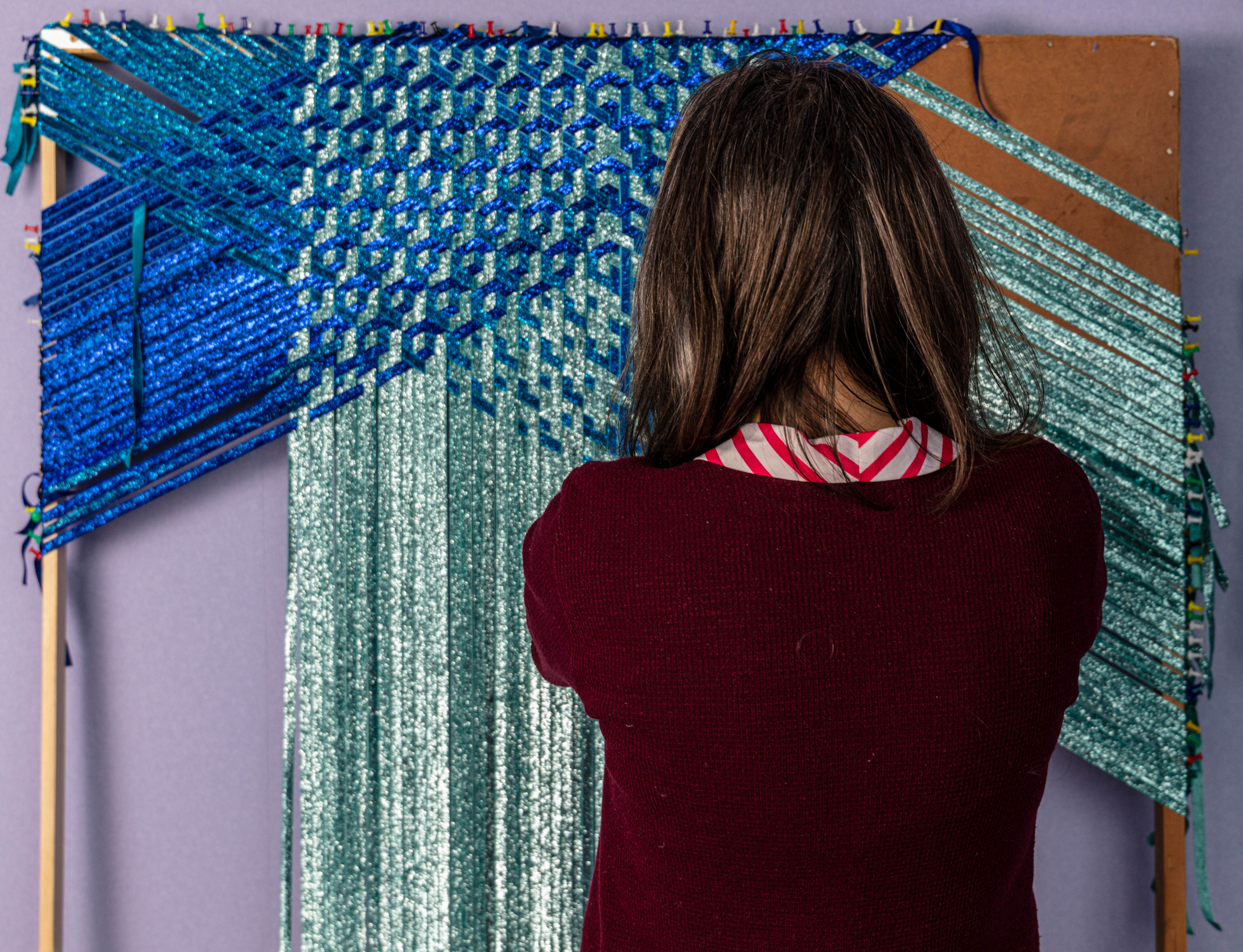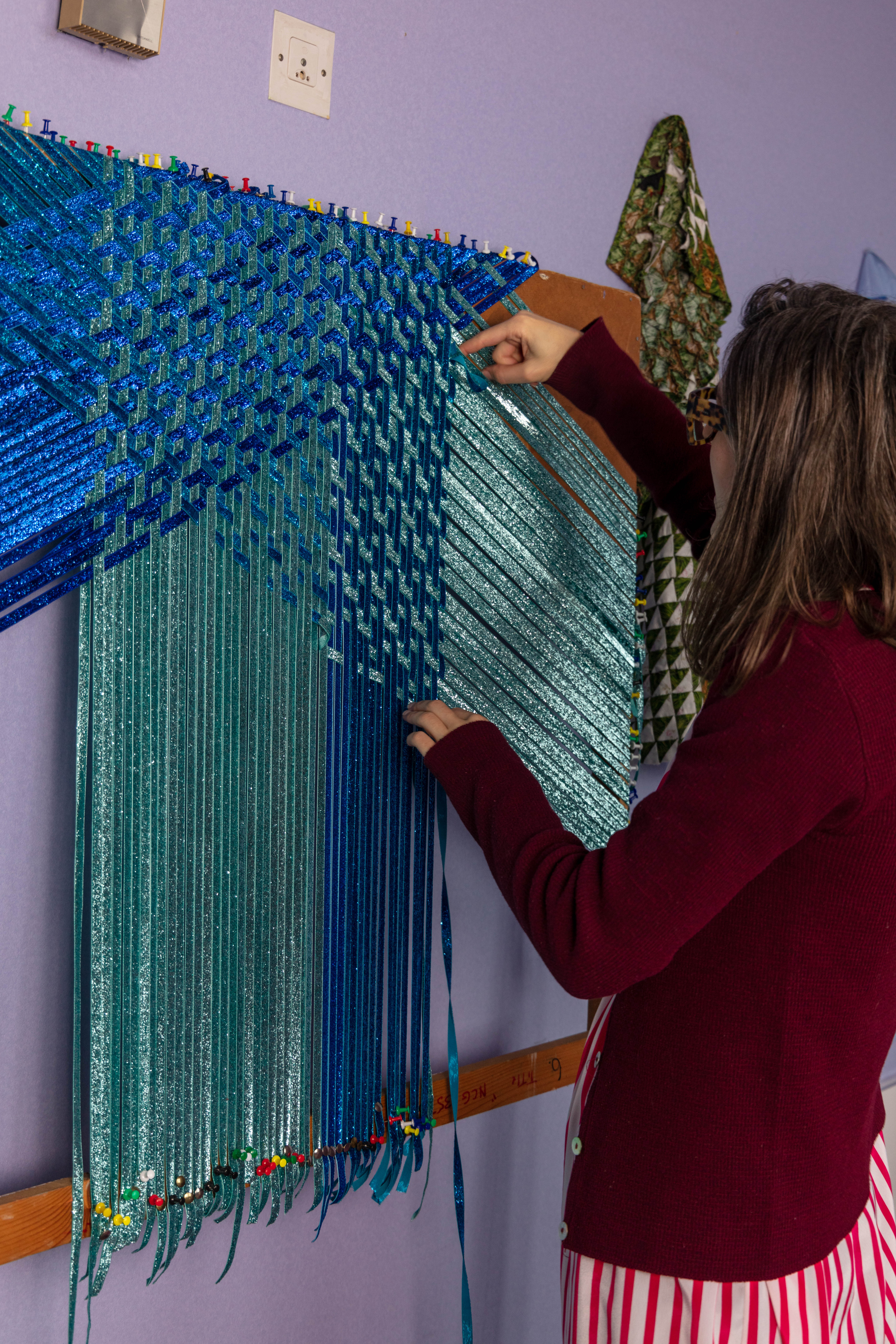 Grace has her studio at the Queens Street Studio. She looks at intensive craft processes such as weaving and sewing exploring self-reflexive subject, expanding an understanding of experience , drawing and tactility, through form and content.