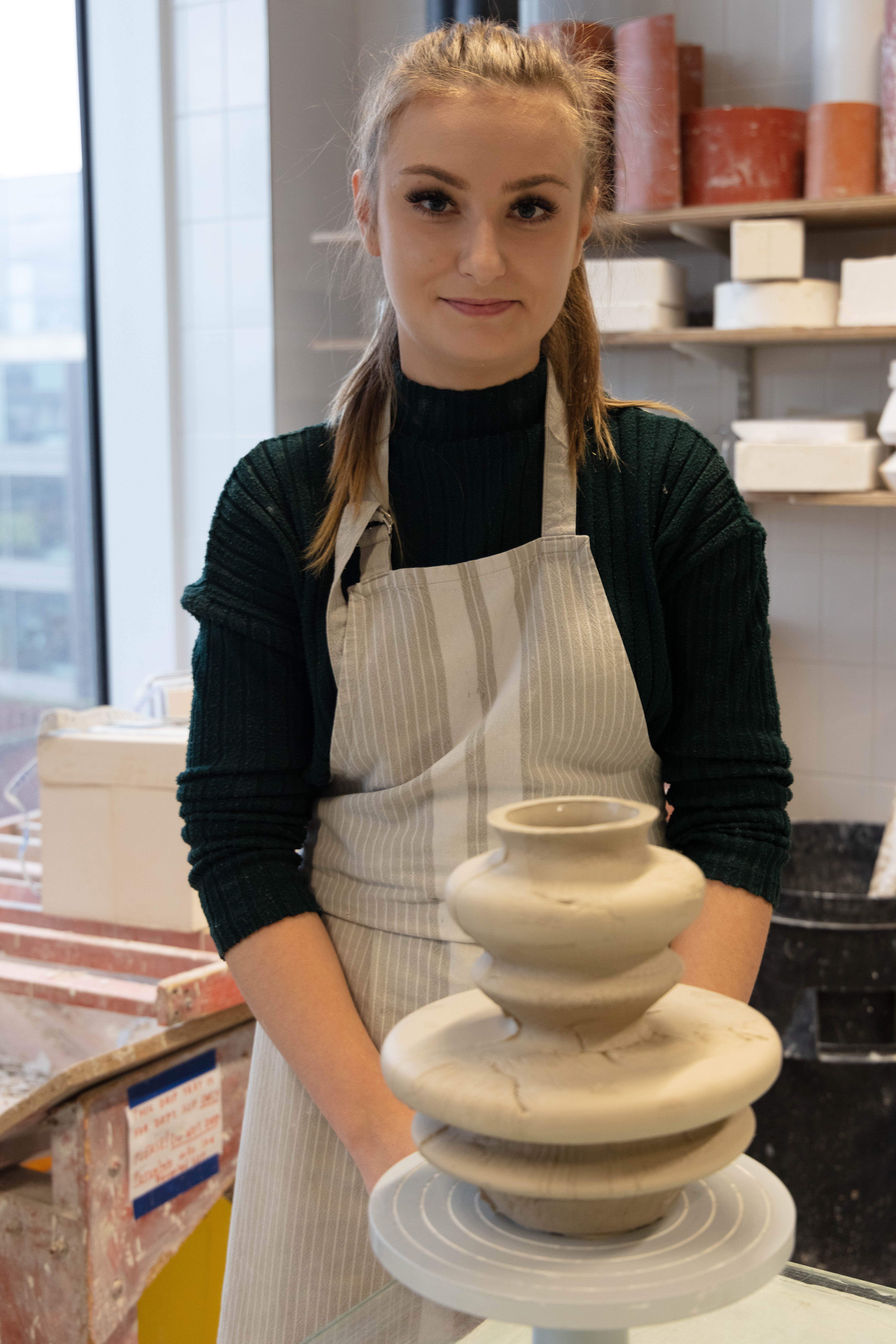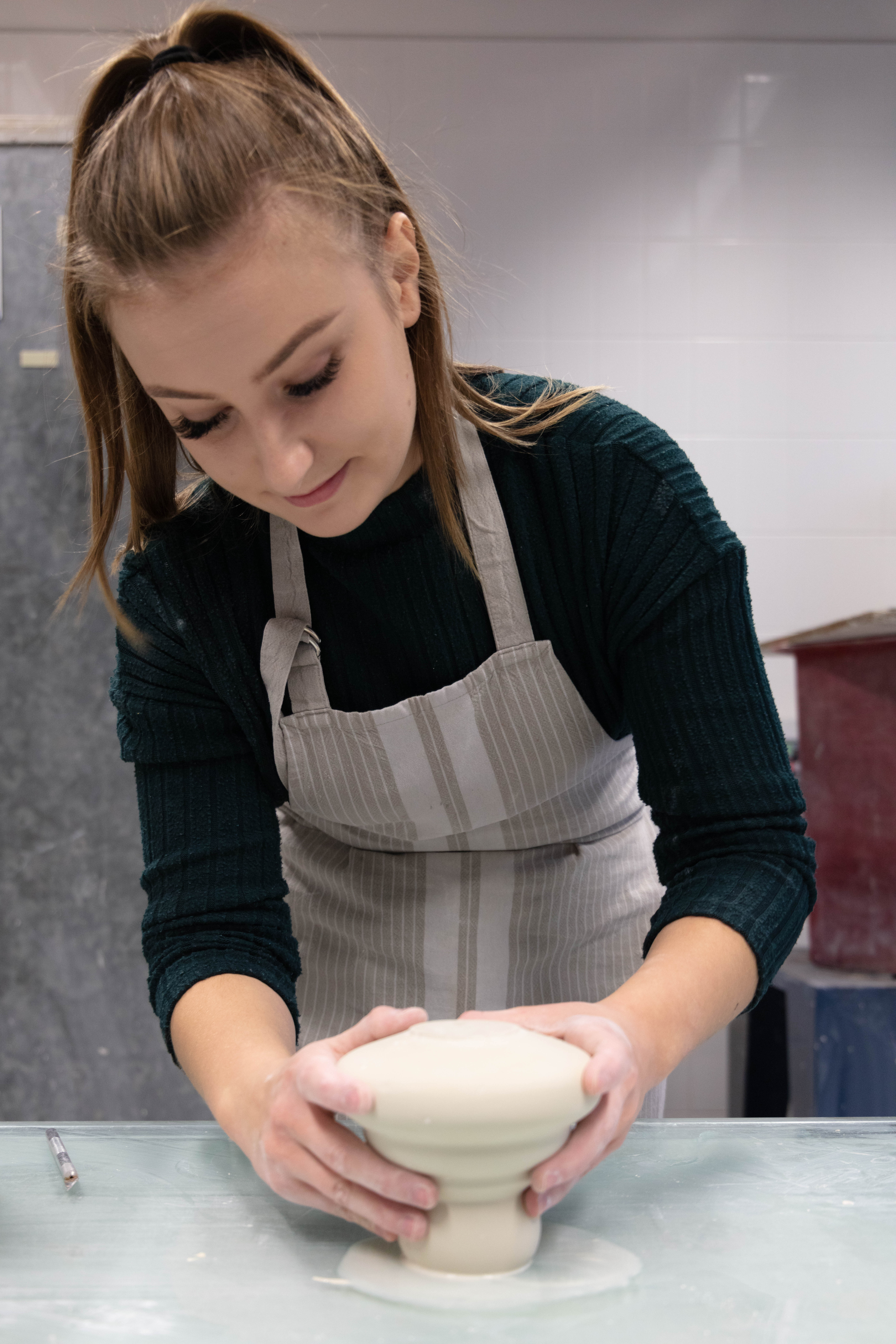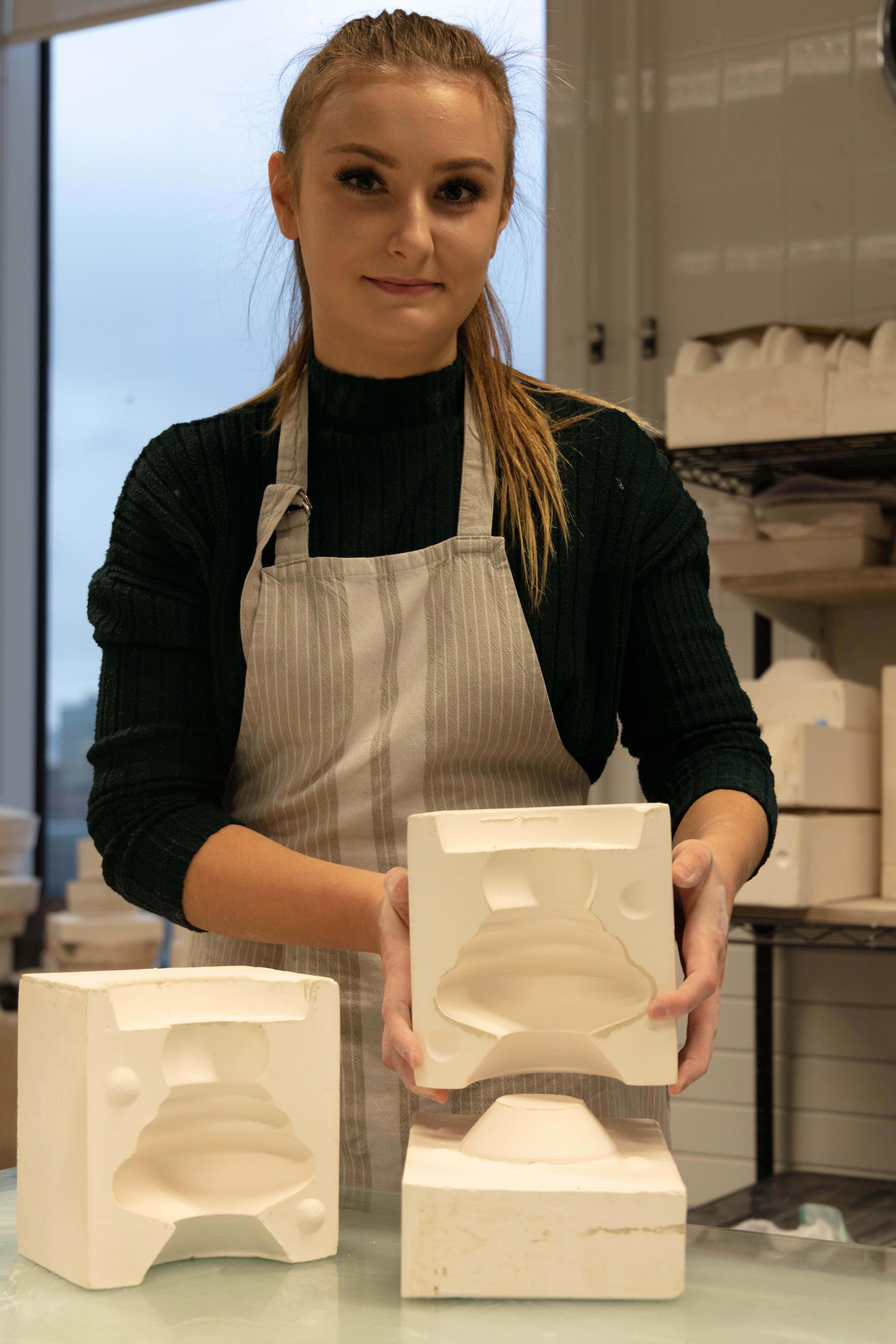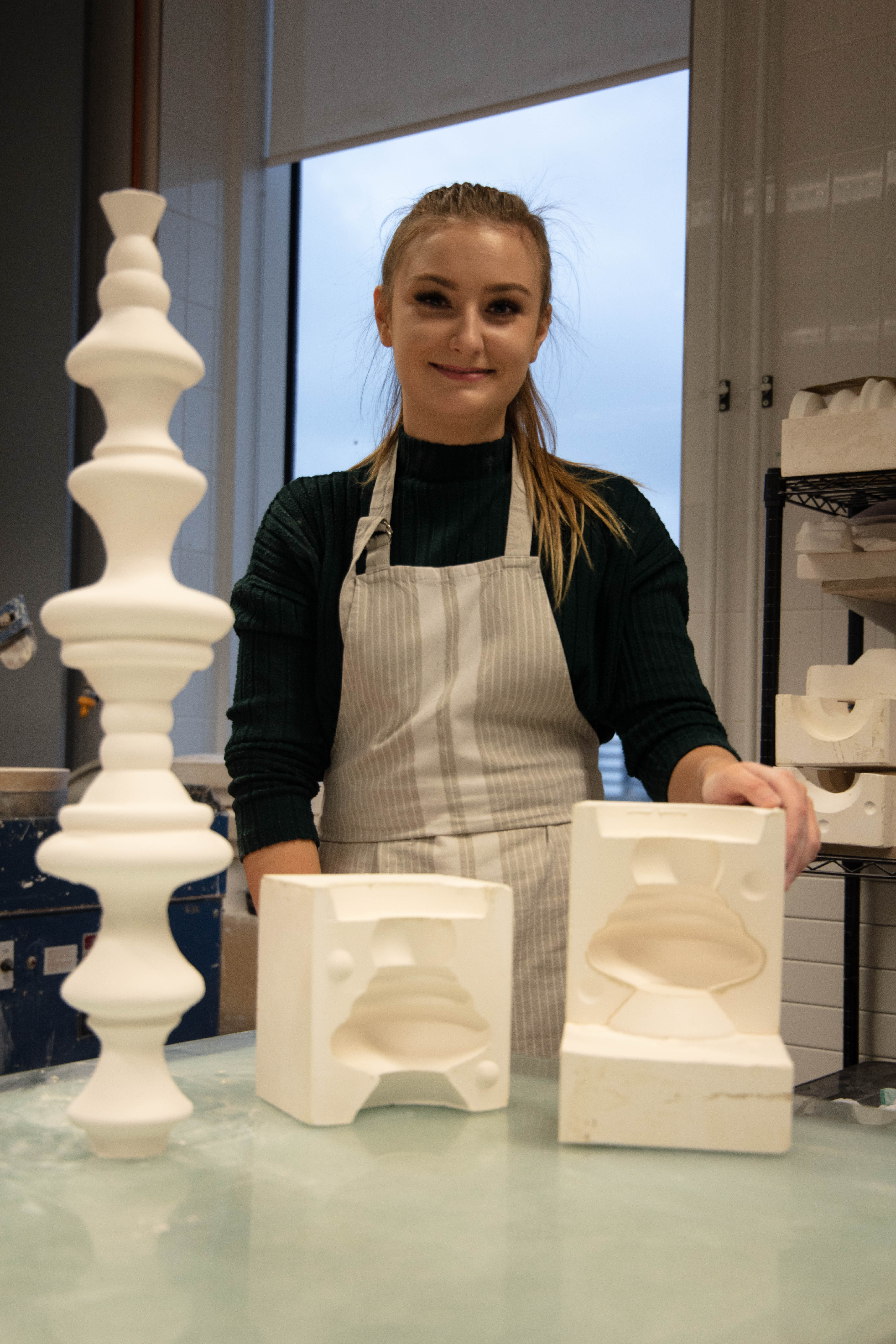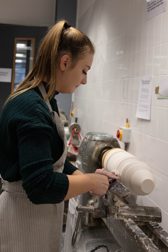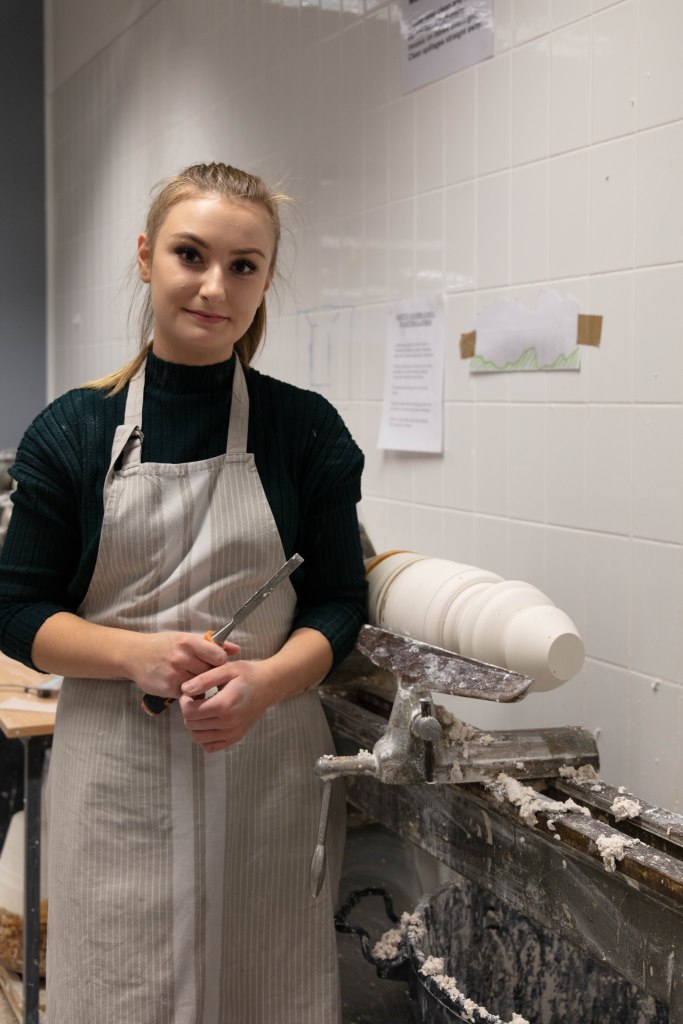 Zara is a 3rd Year student studying ceramics, she is extremely nice person to work with and great to talk to. She was very prepared for the shoot as she also wanted images for her social media and was extremely happy when we arranged the day to take this. It was a very easy shoot and even it was photographed just under two hours it didn’t feel that long. Since me and Zara were working together to get the best we both needed and wanted – it was so easy setting them up but also trying to rearrange some things like moving some stuff from the background i.e. bins, big cardboards that weren’t visually pleasing.