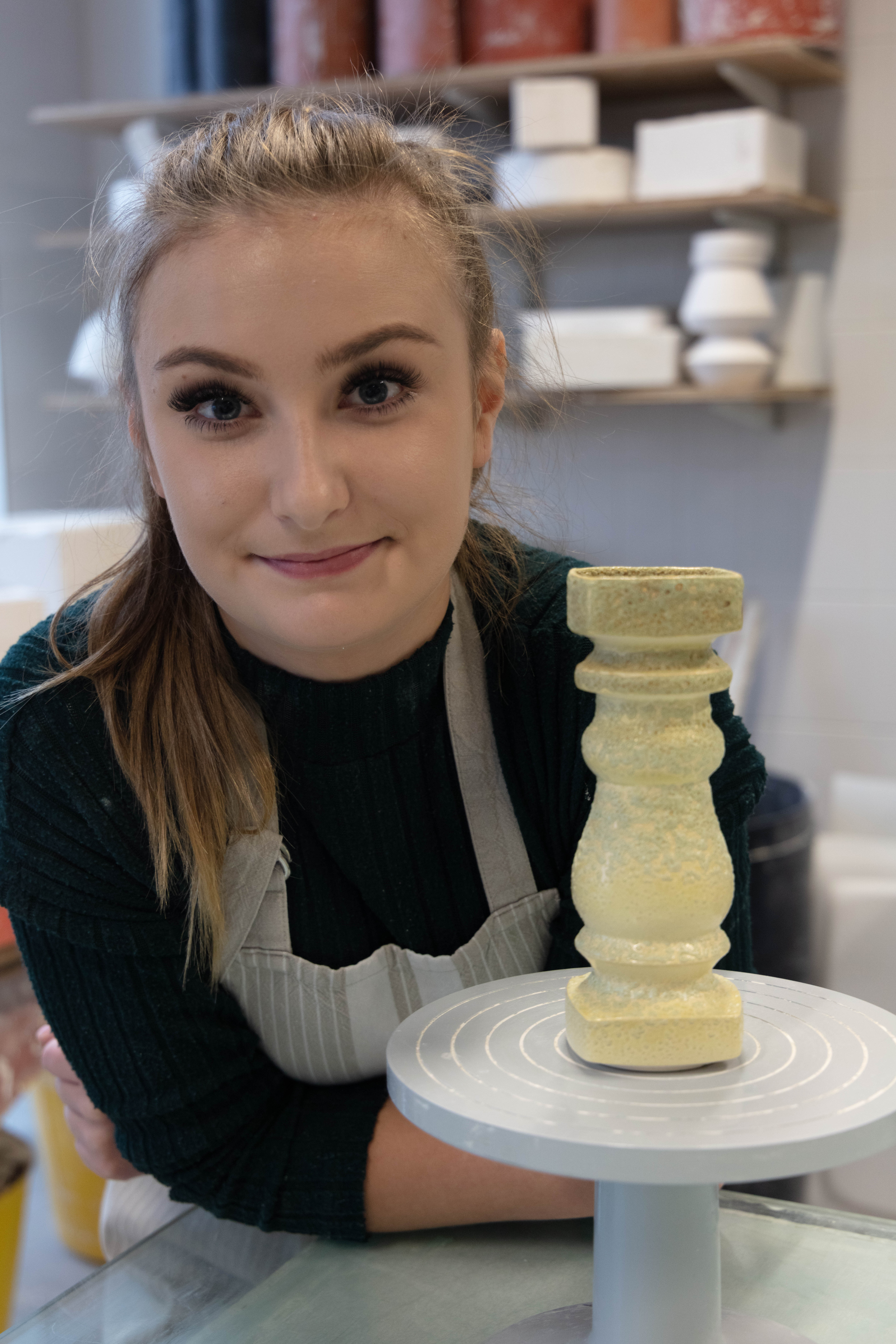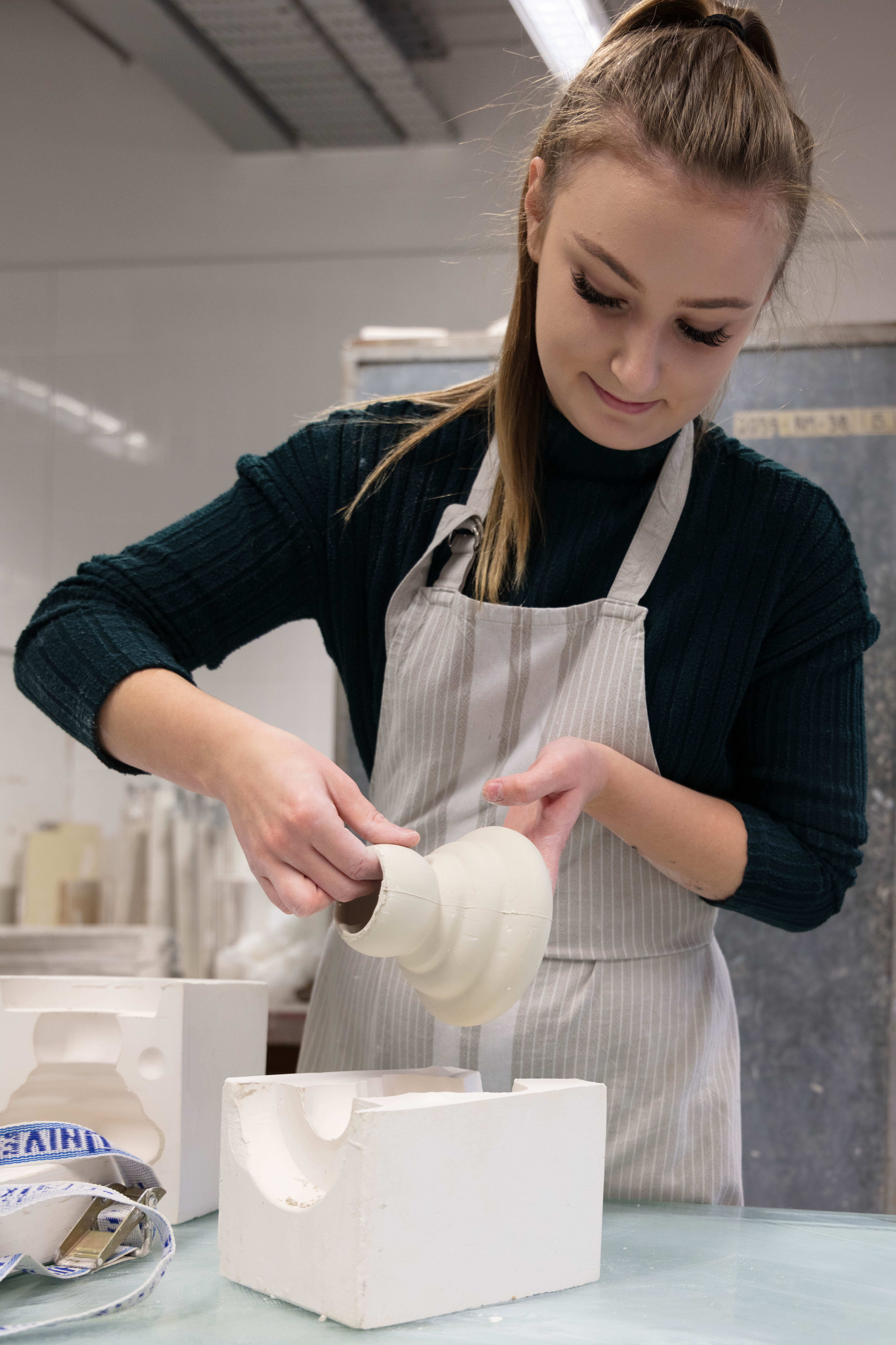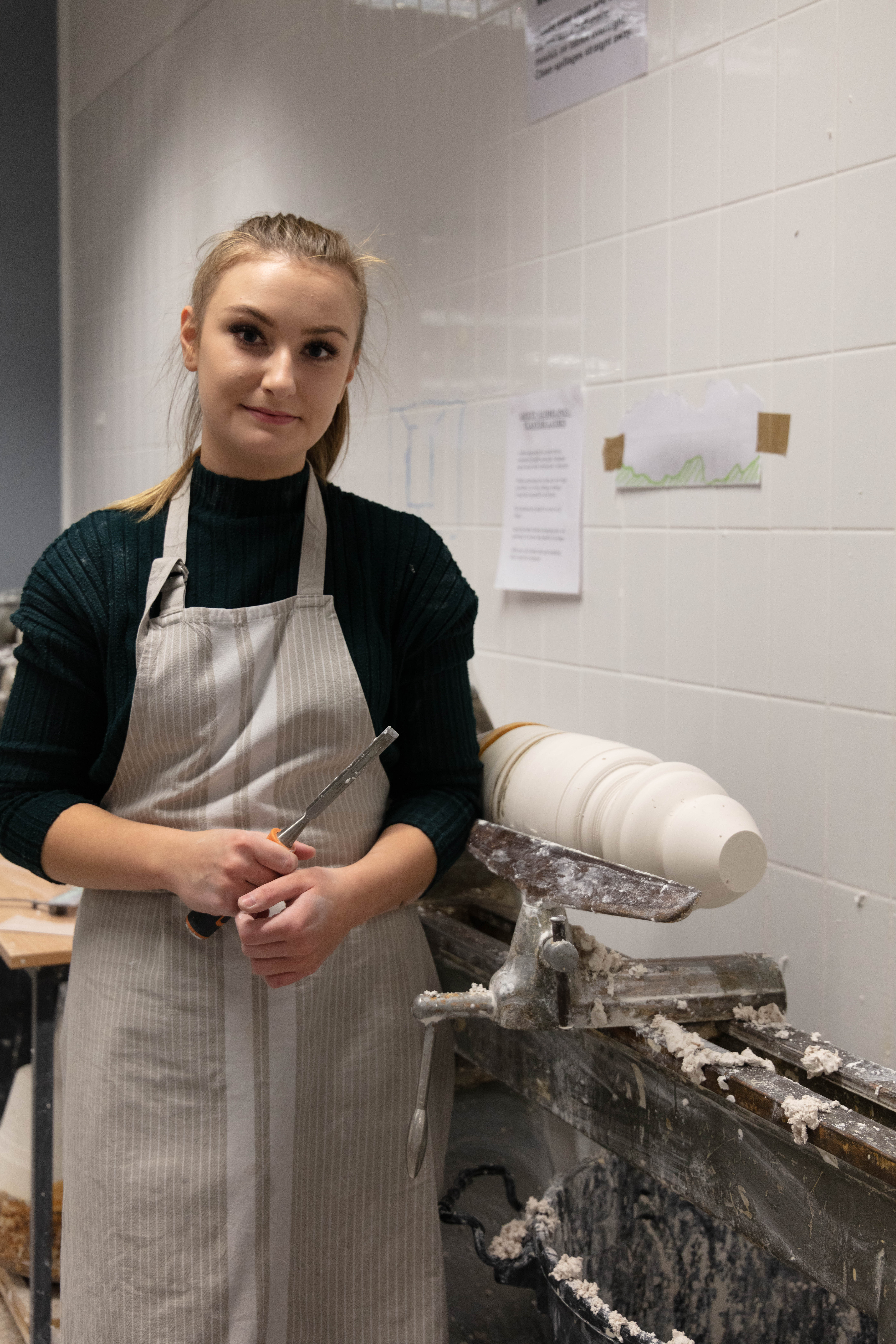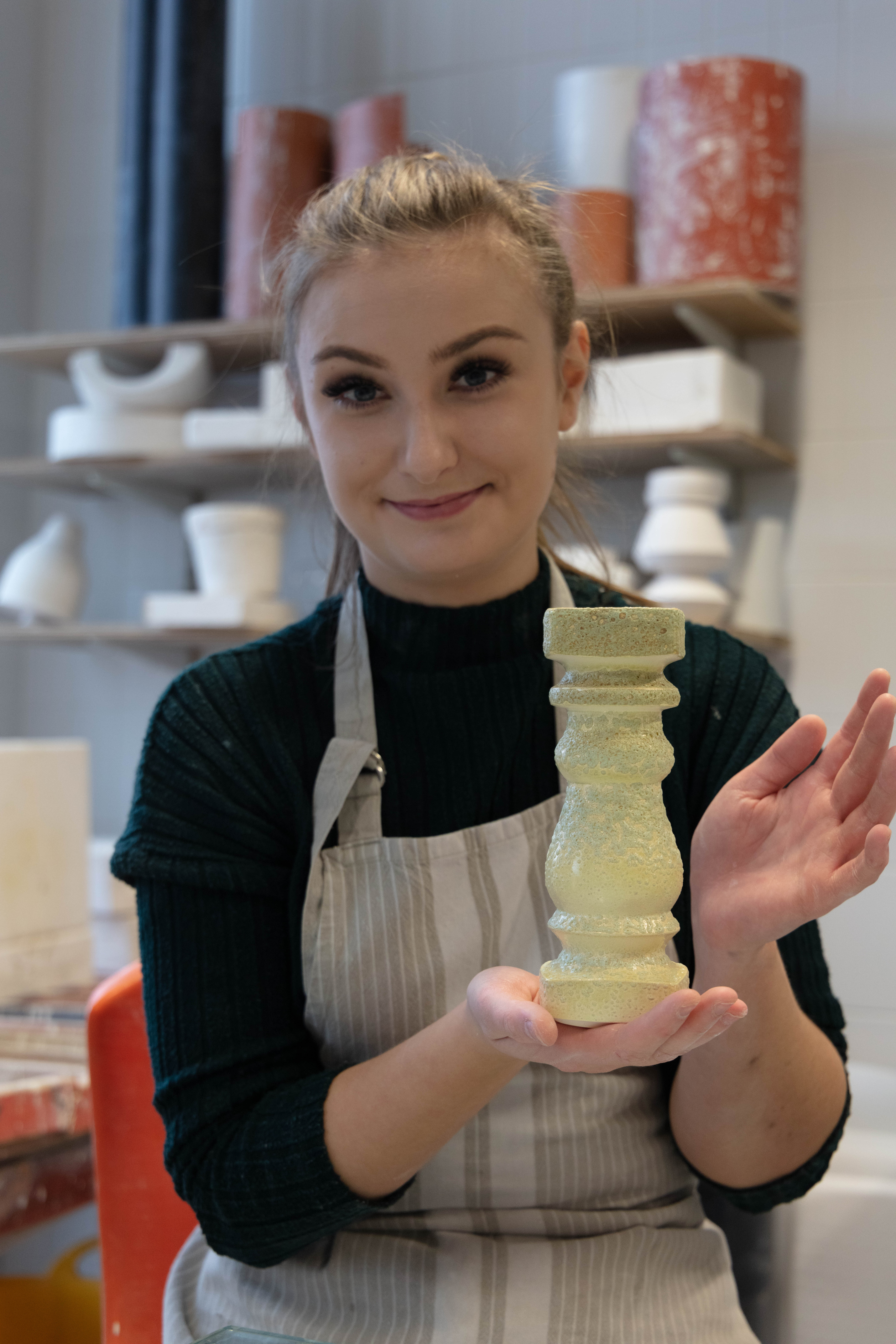 Zara is a 3rd Year student studying ceramics, she is extremely nice person to work with and great to talk to. She was very prepared for the shoot as she also wanted images for her social media and was extremely happy when we arranged the day to take this. It was a very easy shoot and even it was photographed just under two hours it didn’t feel that long. Since me and Zara were working together to get the best we both needed and wanted – it was so easy setting them up but also trying to rearrange some things like moving some stuff from the background i.e. bins, big cardboards that weren’t visually pleasing.