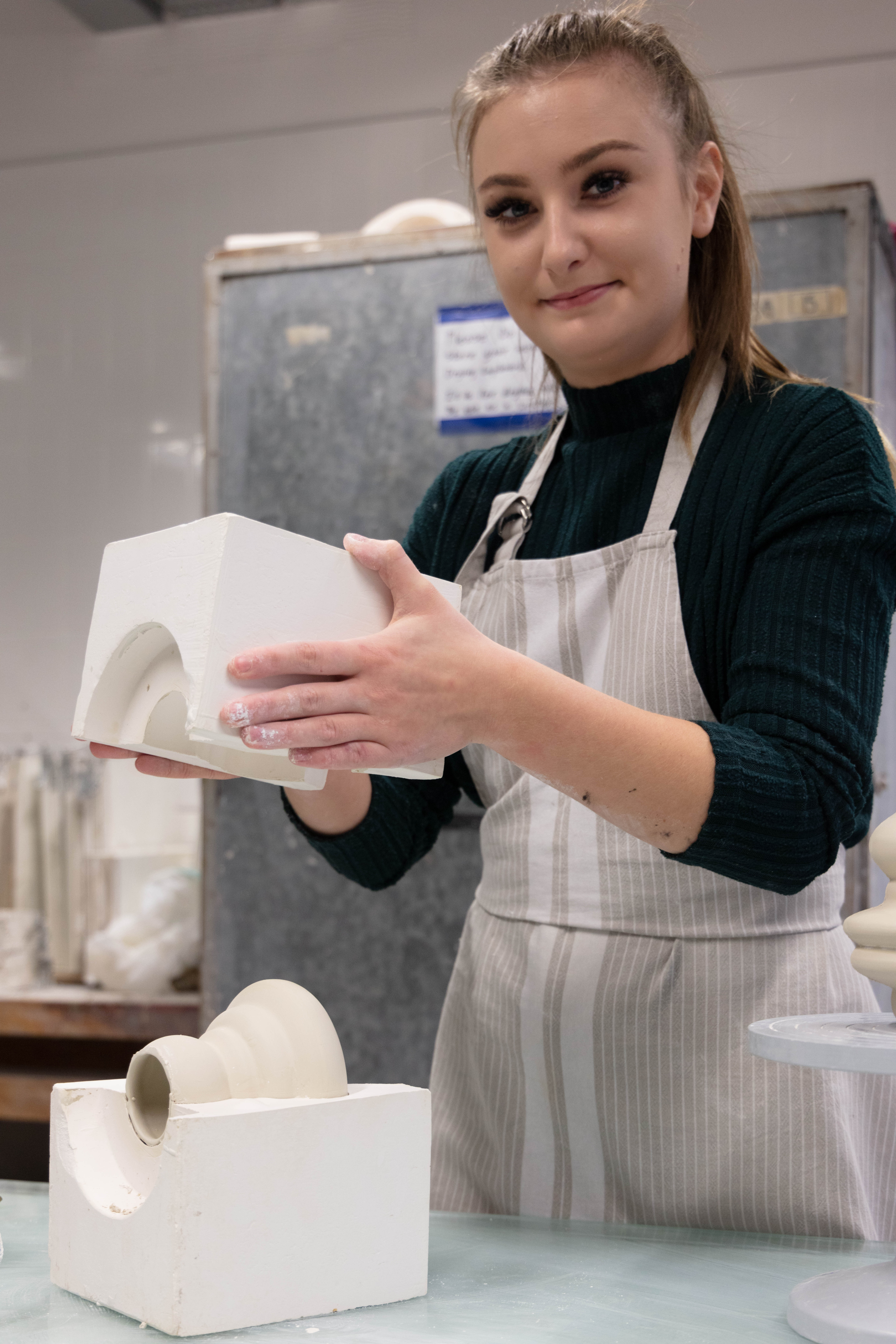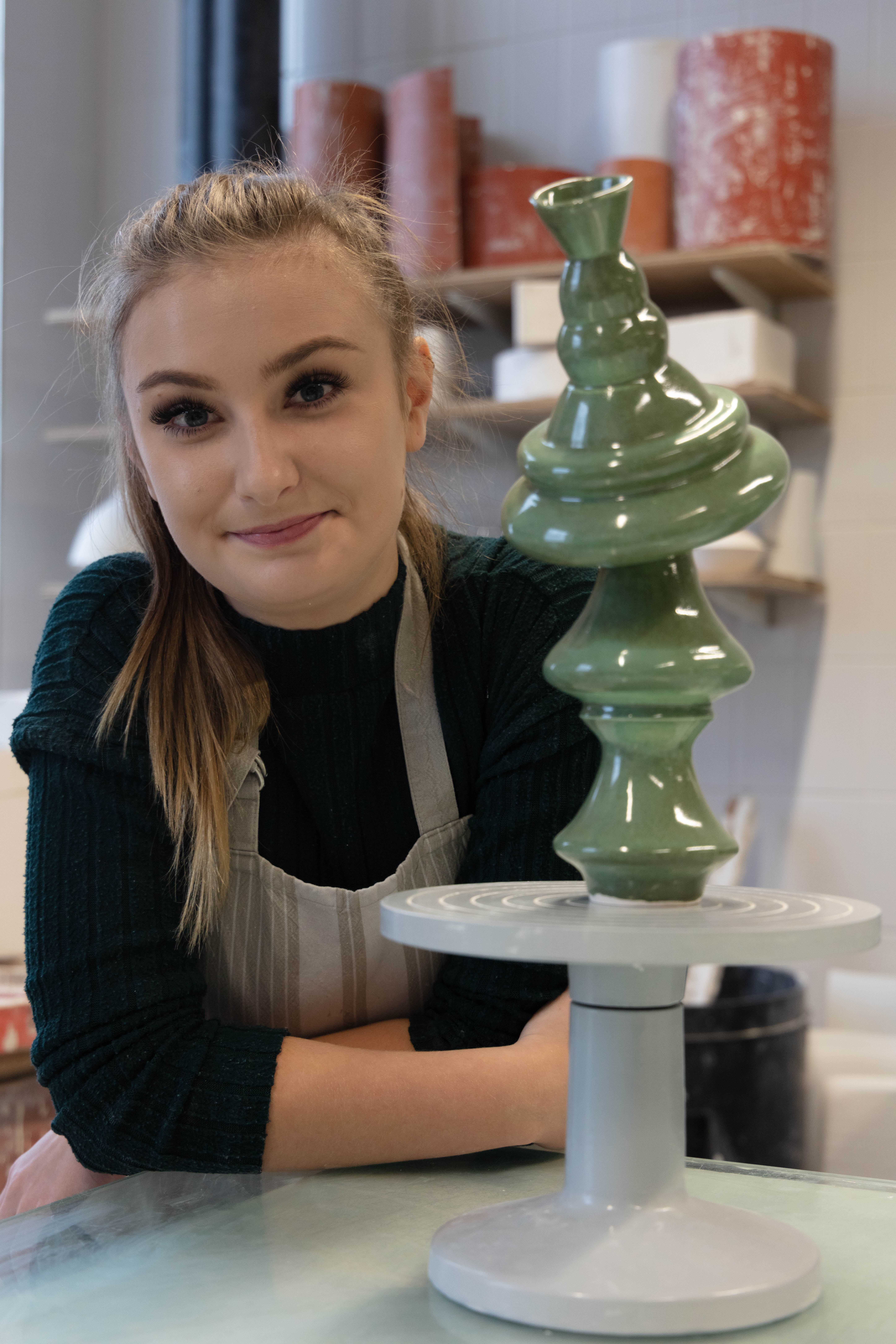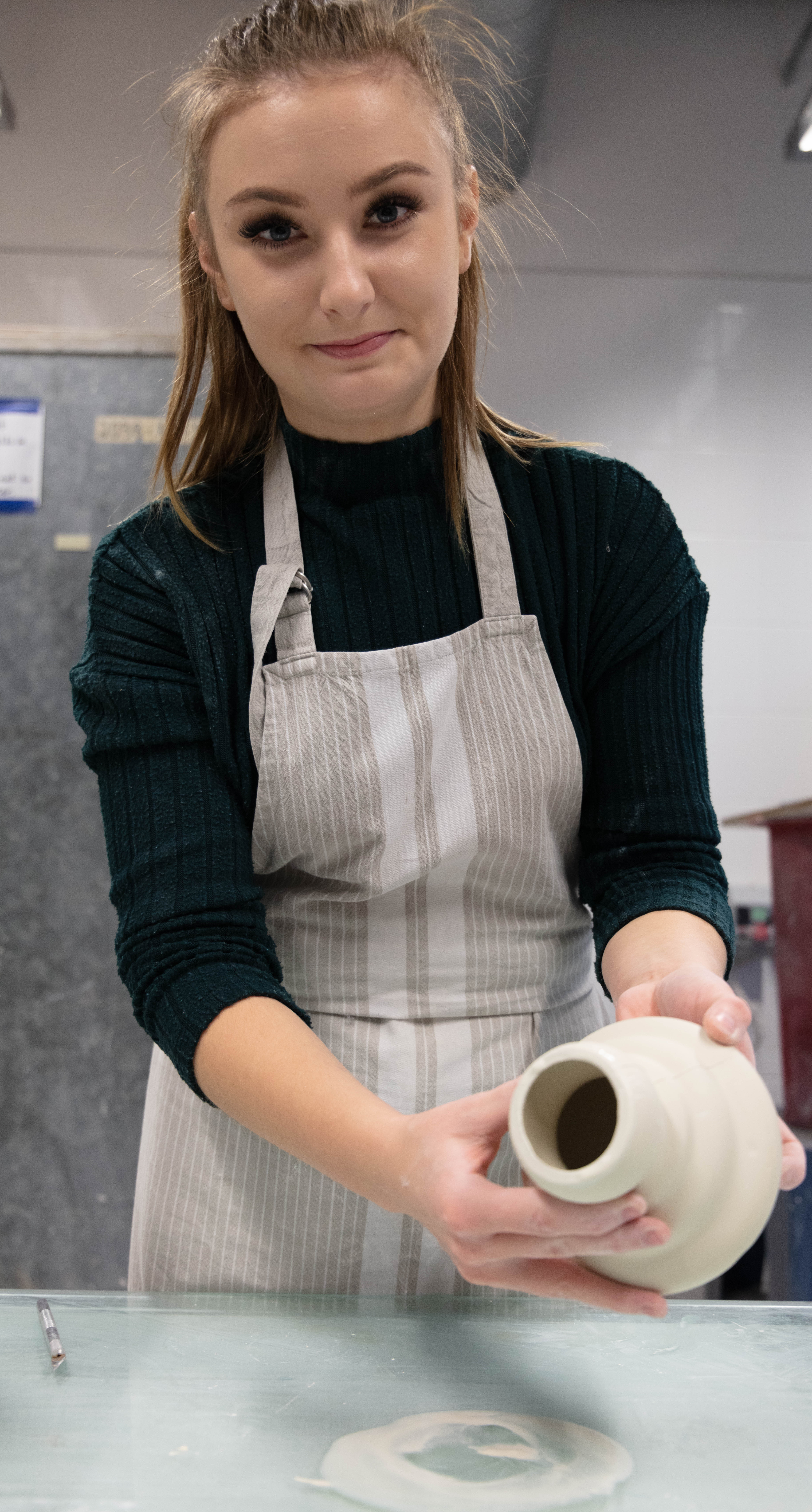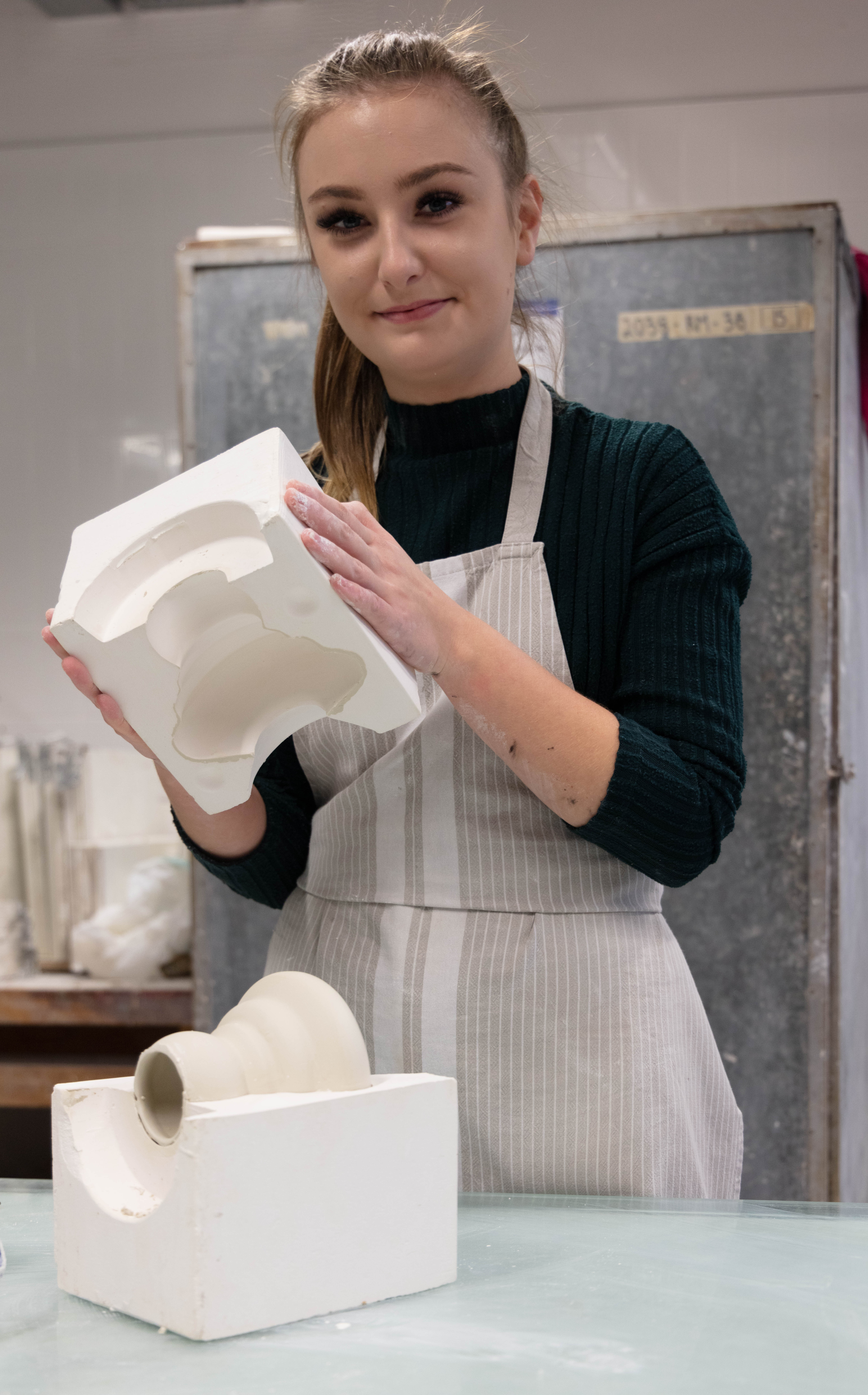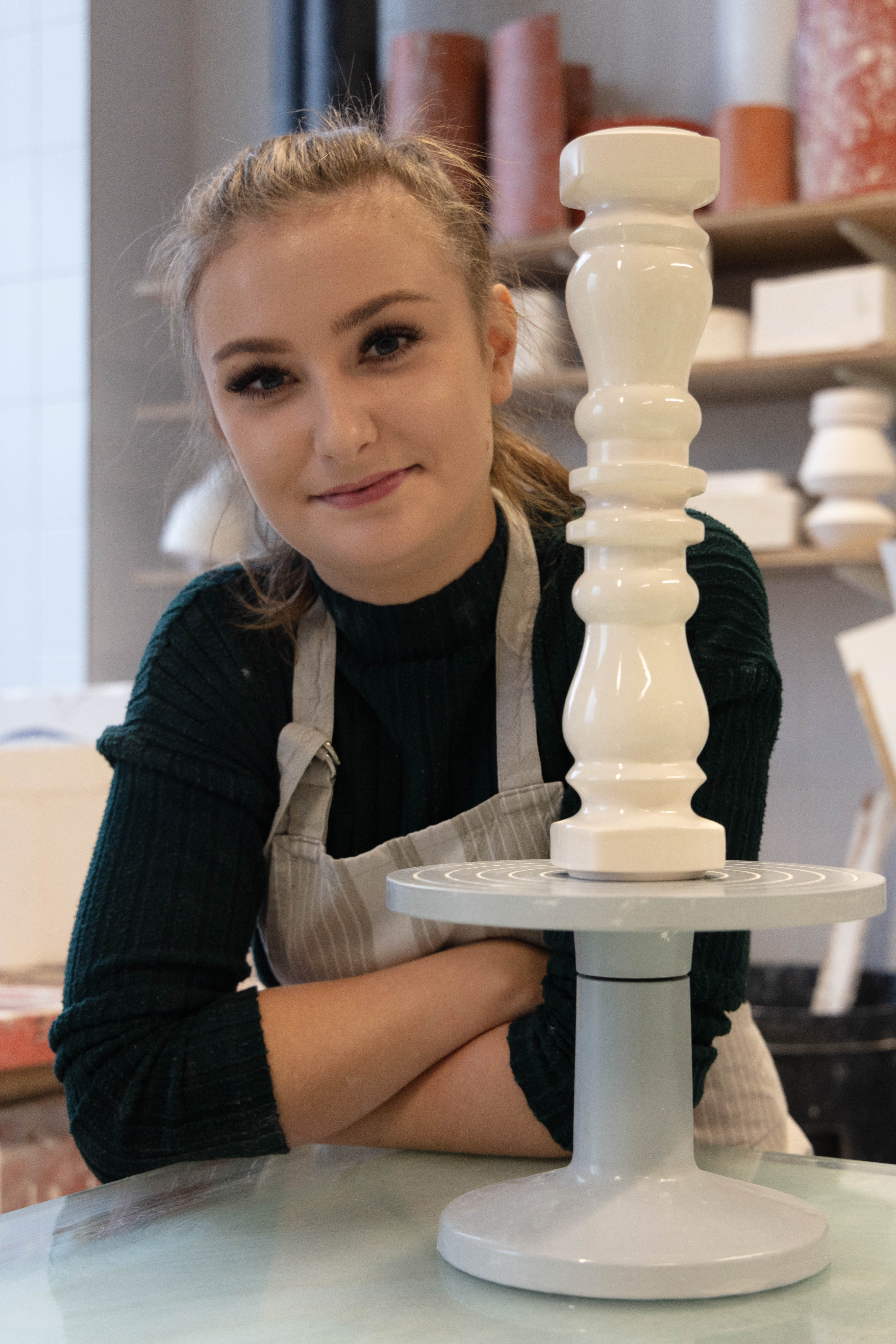 Zara is a 3rd Year student studying ceramics, she is extremely nice person to work with and great to talk to. She was very prepared for the shoot as she also wanted images for her social media and was extremely happy when we arranged the day to take this. It was a very easy shoot and even it was photographed just under two hours it didn’t feel that long. Since me and Zara were working together to get the best we both needed and wanted – it was so easy setting them up but also trying to rearrange some things like moving some stuff from the background i.e. bins, big cardboards that weren’t visually pleasing.