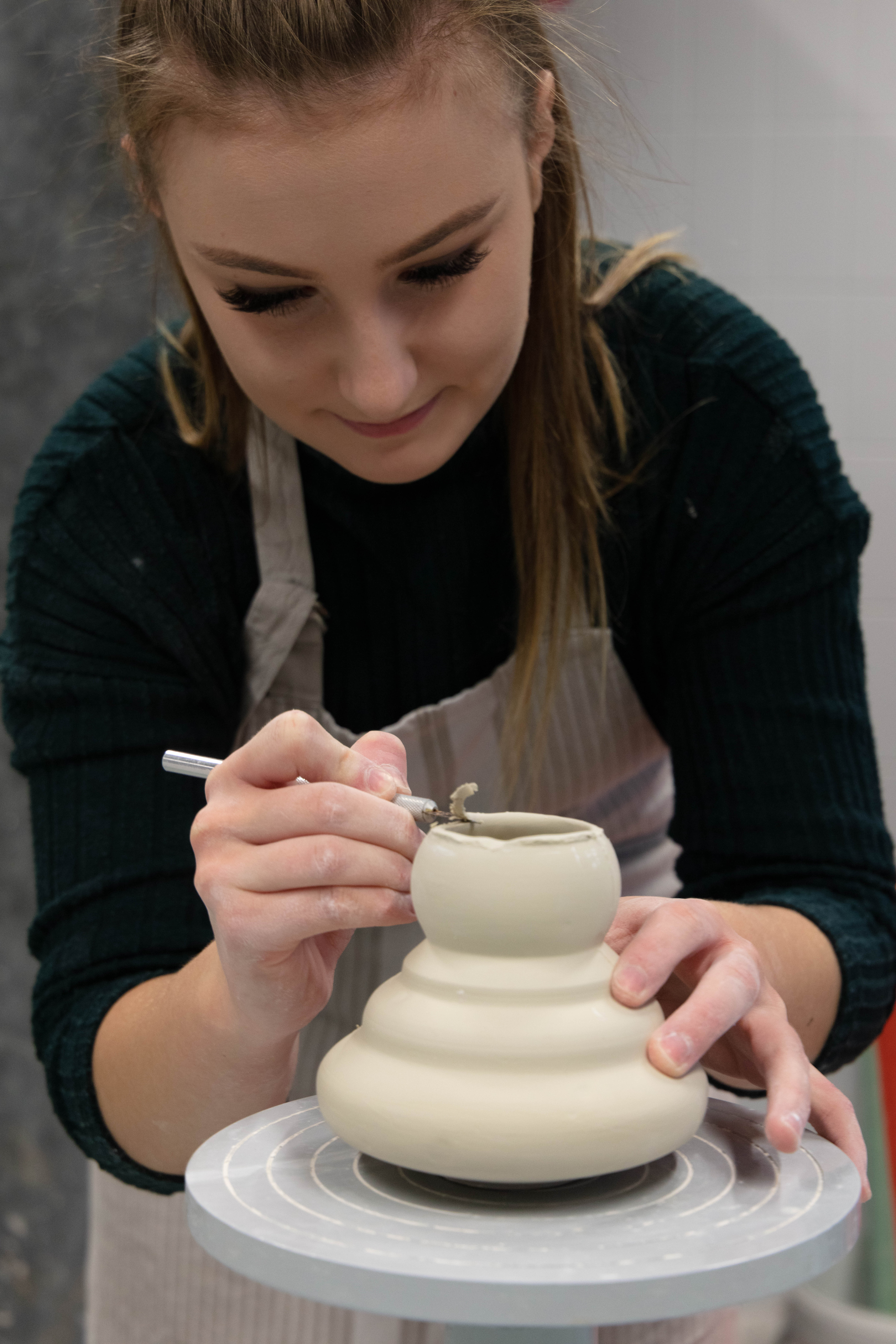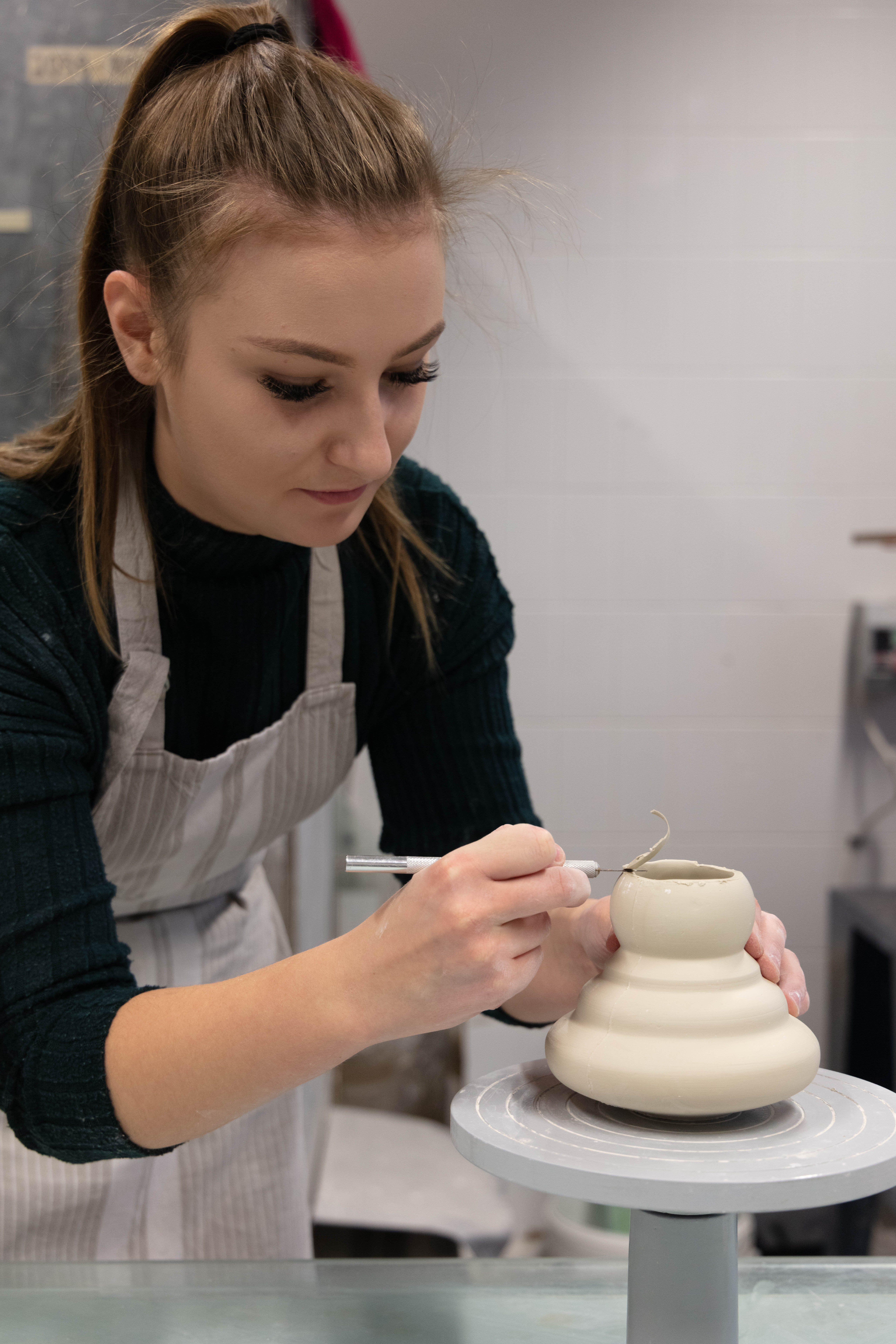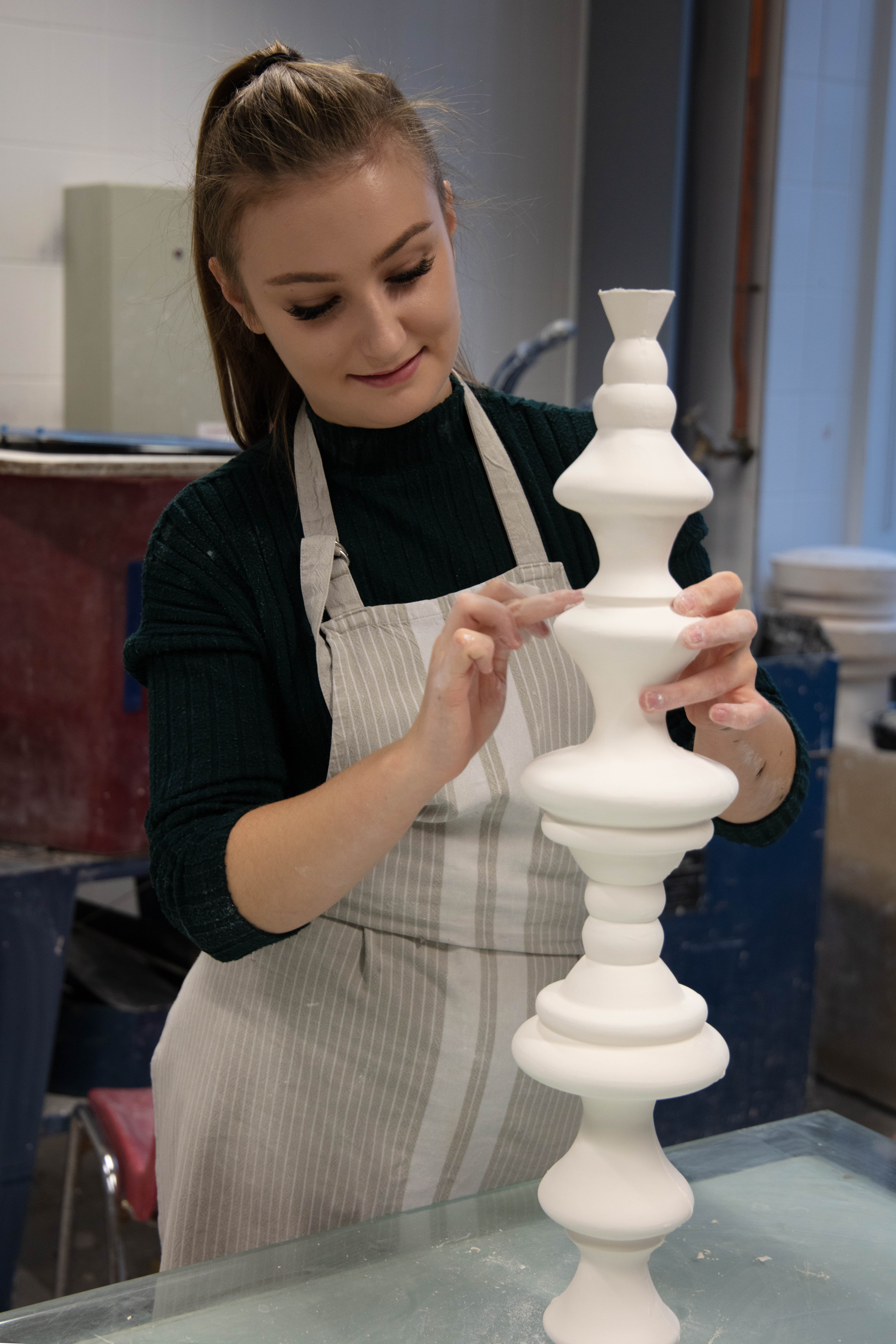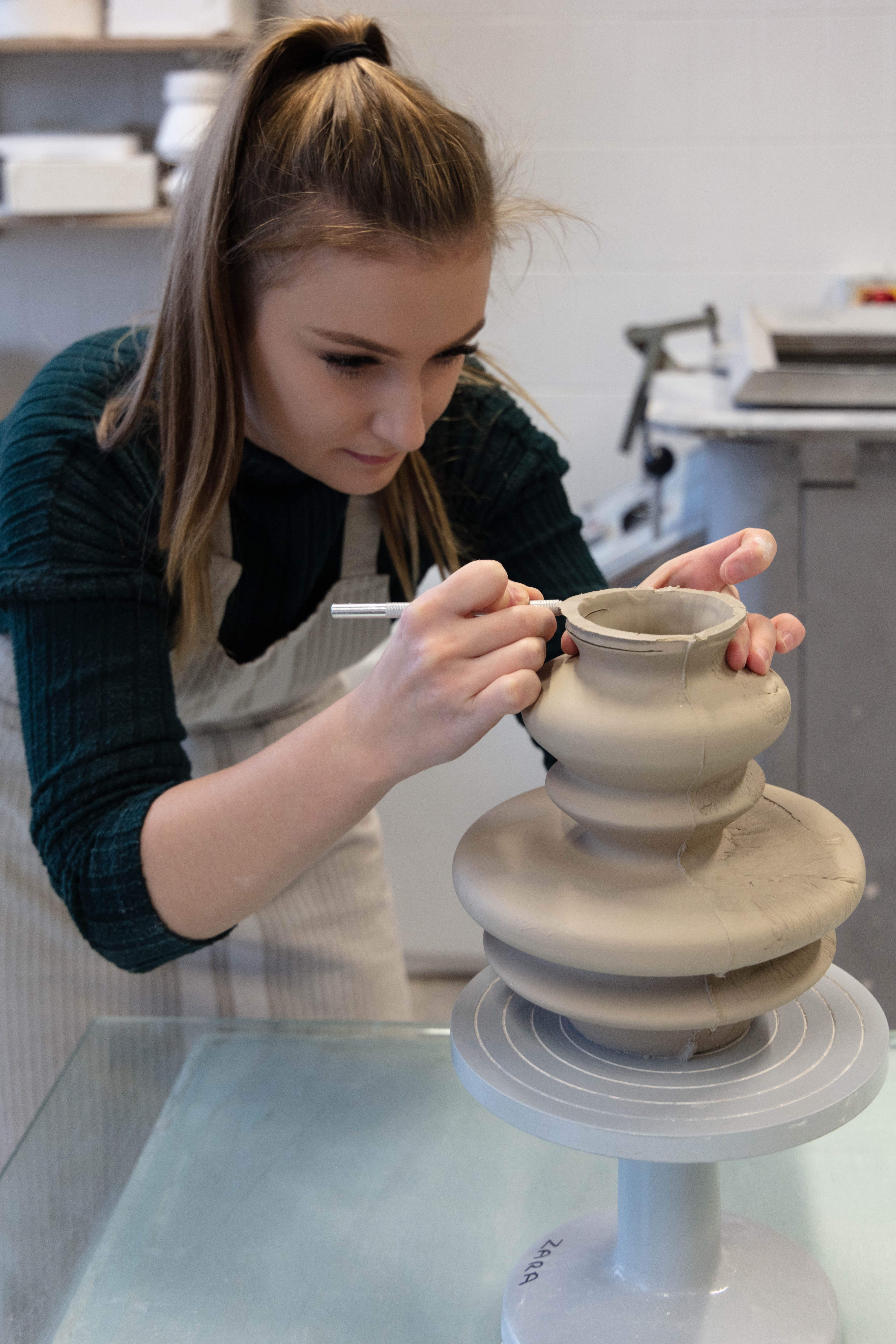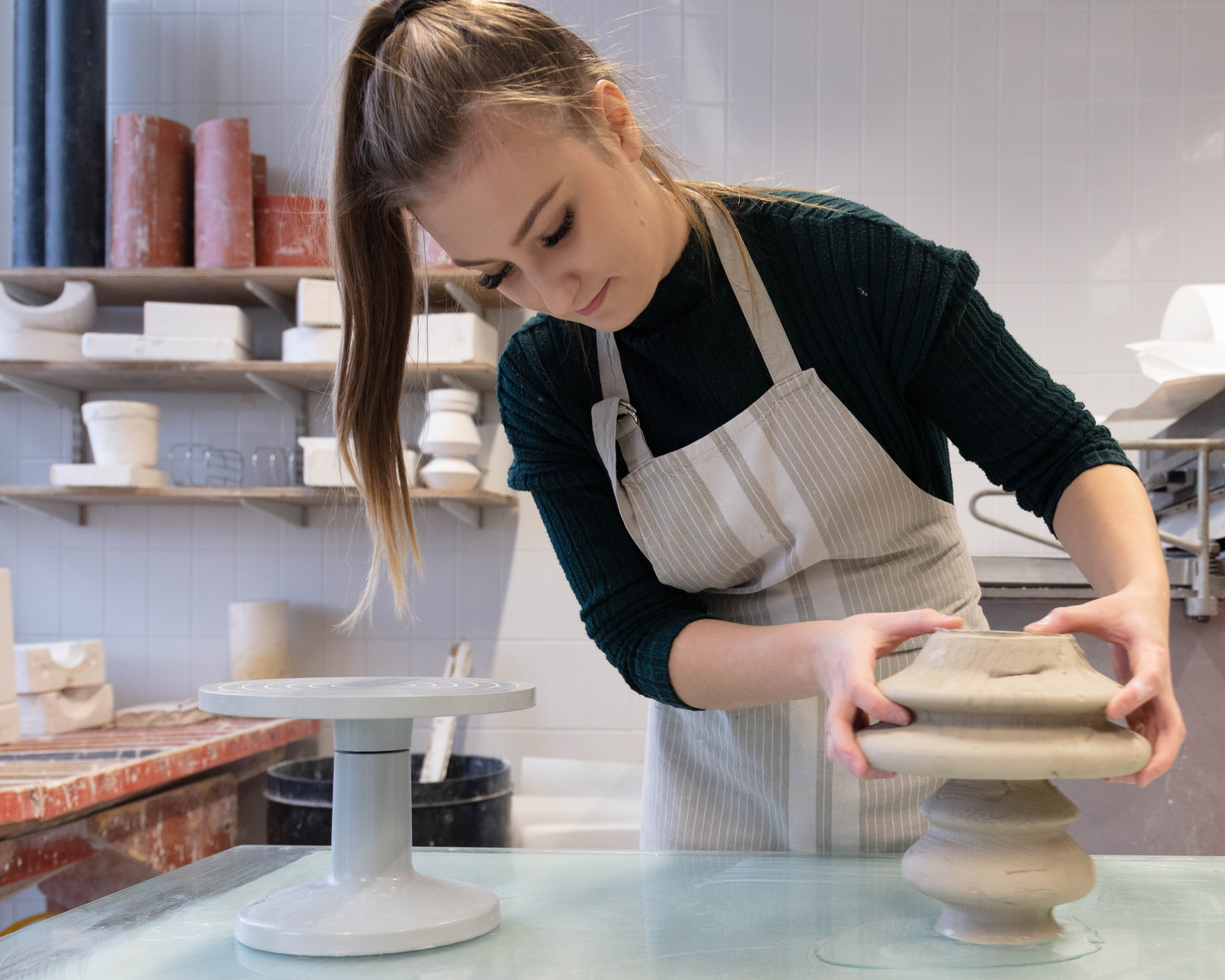 Zara is a 3rd Year student studying ceramics, she is extremely nice person to work with and great to talk to. She was very prepared for the shoot as she also wanted images for her social media and was extremely happy when we arranged the day to take this. It was a very easy shoot and even it was photographed just under two hours it didn’t feel that long. Since me and Zara were working together to get the best we both needed and wanted – it was so easy setting them up but also trying to rearrange some things like moving some stuff from the background i.e. bins, big cardboards that weren’t visually pleasing.