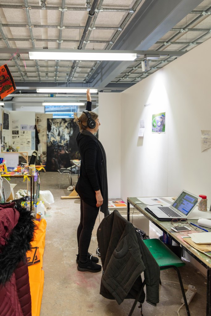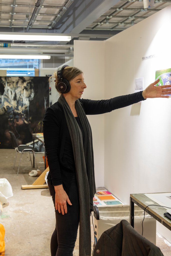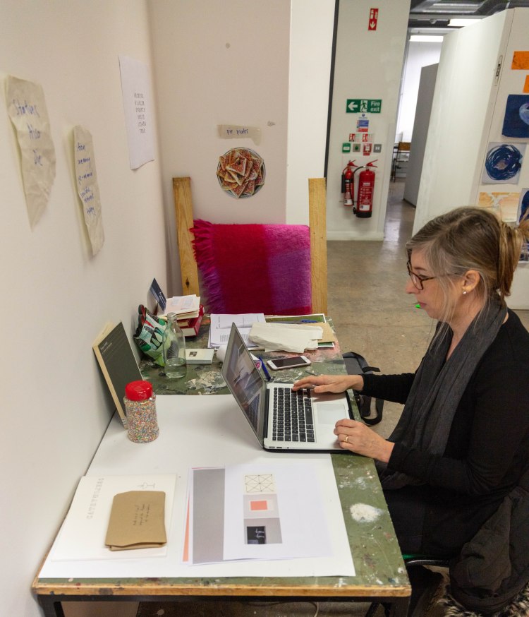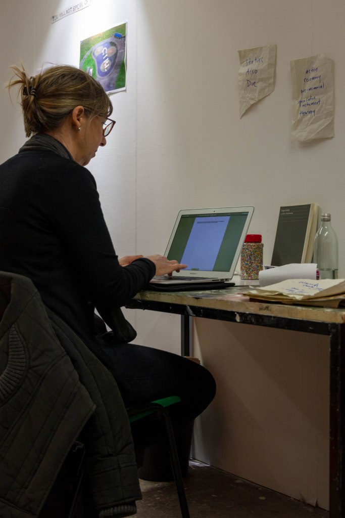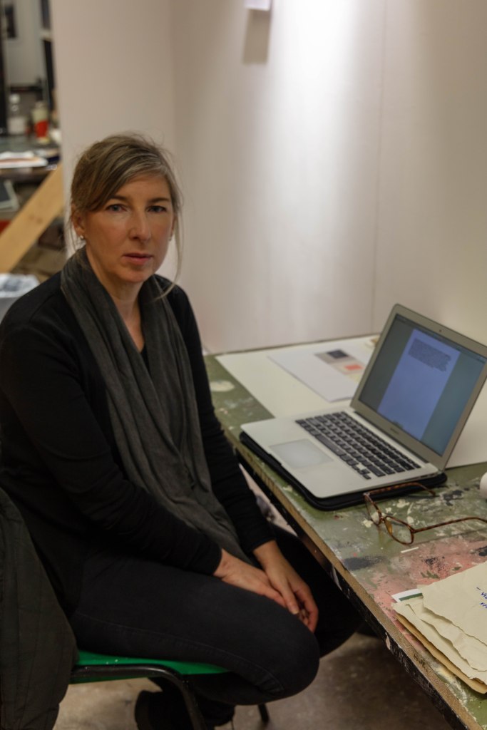 These are the images I picked out for Anna’s, as i feel that they portray Anna’s work really well, she said it herself that most of her work includes a lot of research and then actually planning to what she is going to do. That’s why I decided to have one image of her at her table in her studio working away, (I do have an image of her at her desk and looking at me, I didn’t include it because it wasn’t as strong as this one) and the other image of her holding a page with information about her work and with a digital printed visualization of her work which show that she plans out it a head before going ahead and doing it as she prefers performance as a style of her work. That is the reason to why i picked these two as i also wanted to show what type of person Anna was and i wanted to show her in the best possible way.