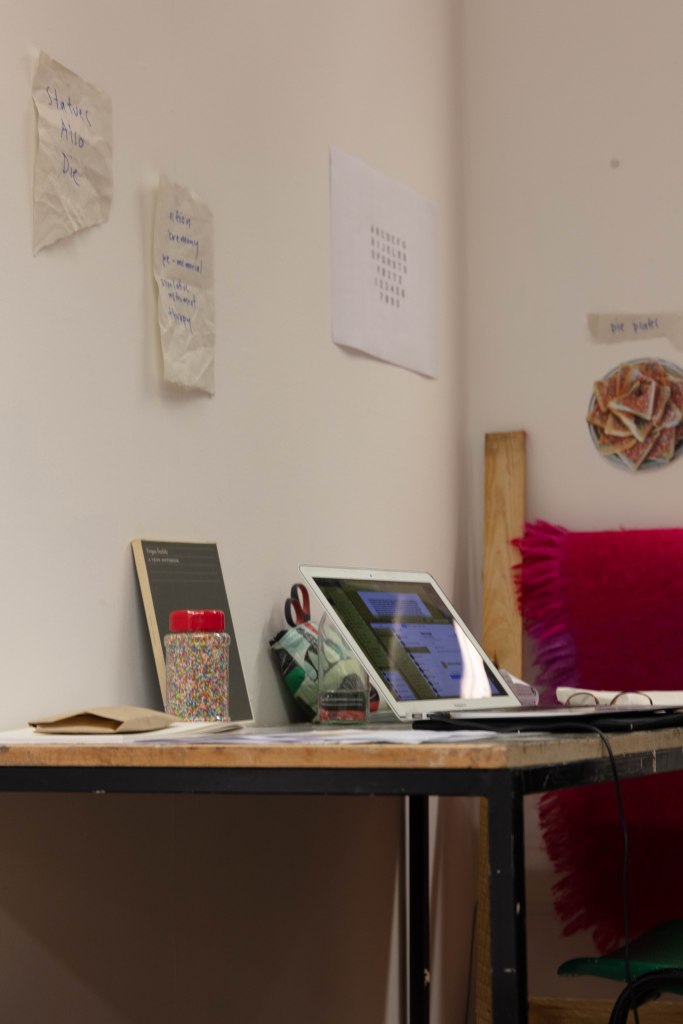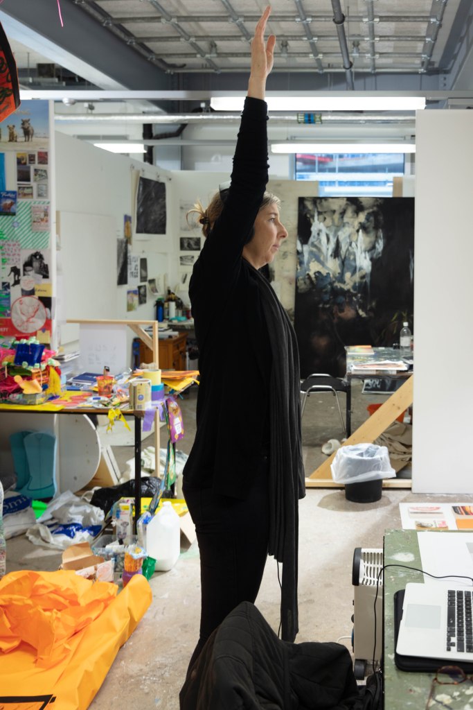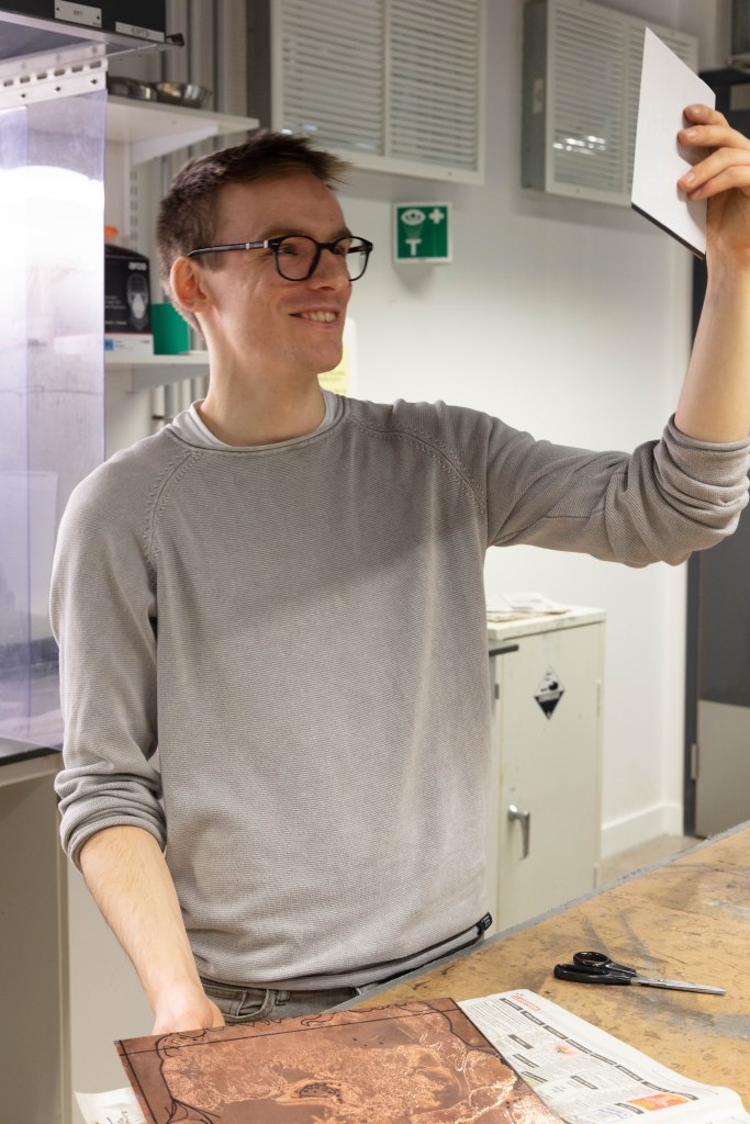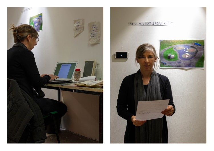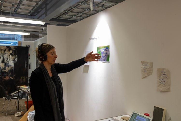 These are the images I picked out for Anna’s, as i feel that they portray Anna’s work really well, she said it herself that most of her work includes a lot of research and then actually planning to what she is going to do. That’s why I decided to have one image of her at her table in her studio working away, (I do have an image of her at her desk and looking at me, I didn’t include it because it wasn’t as strong as this one) and the other image of her holding a page with information about her work and with a digital printed visualization of her work which show that she plans out it a head before going ahead and doing it as she prefers performance as a style of her work. That is the reason to why i picked these two as i also wanted to show what type of person Anna was and i wanted to show her in the best possible way.