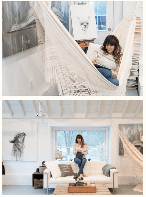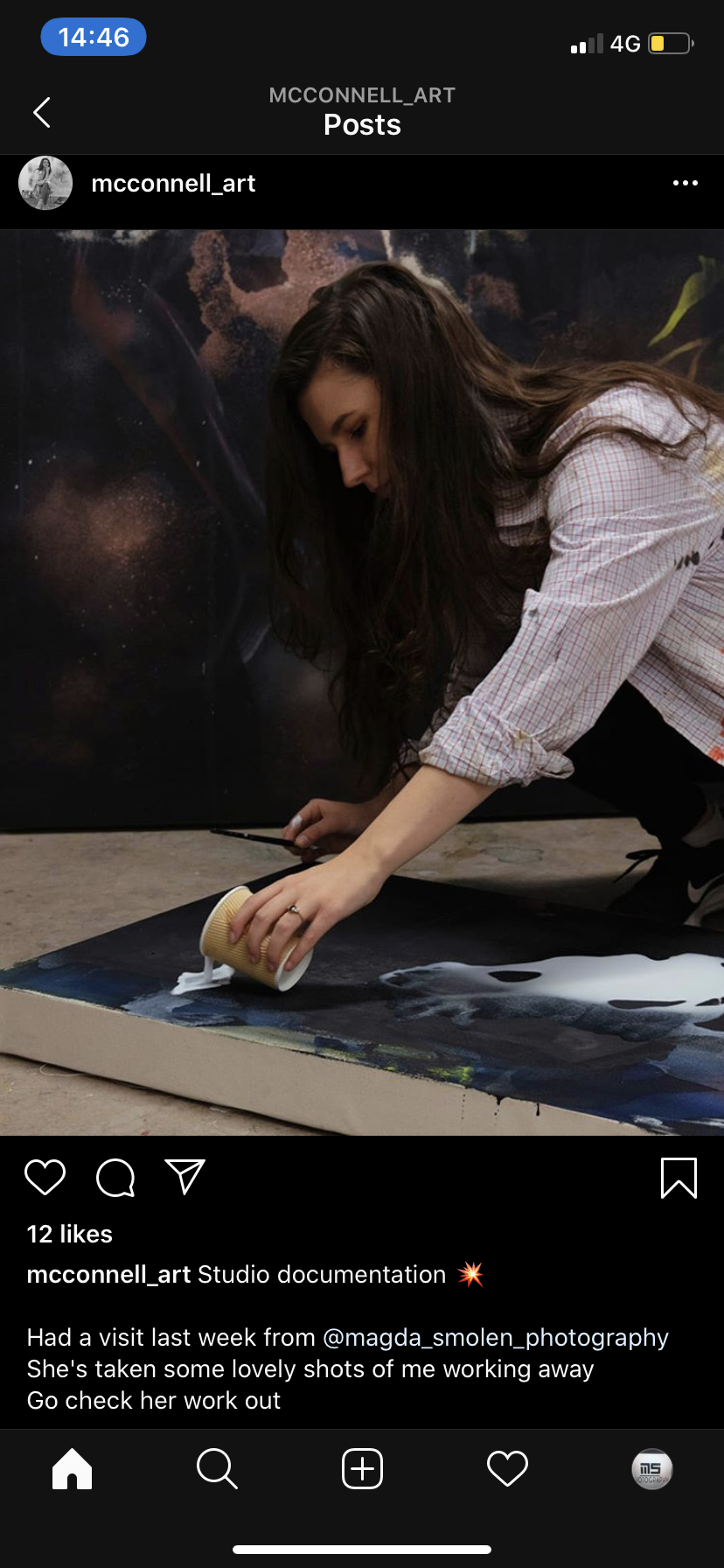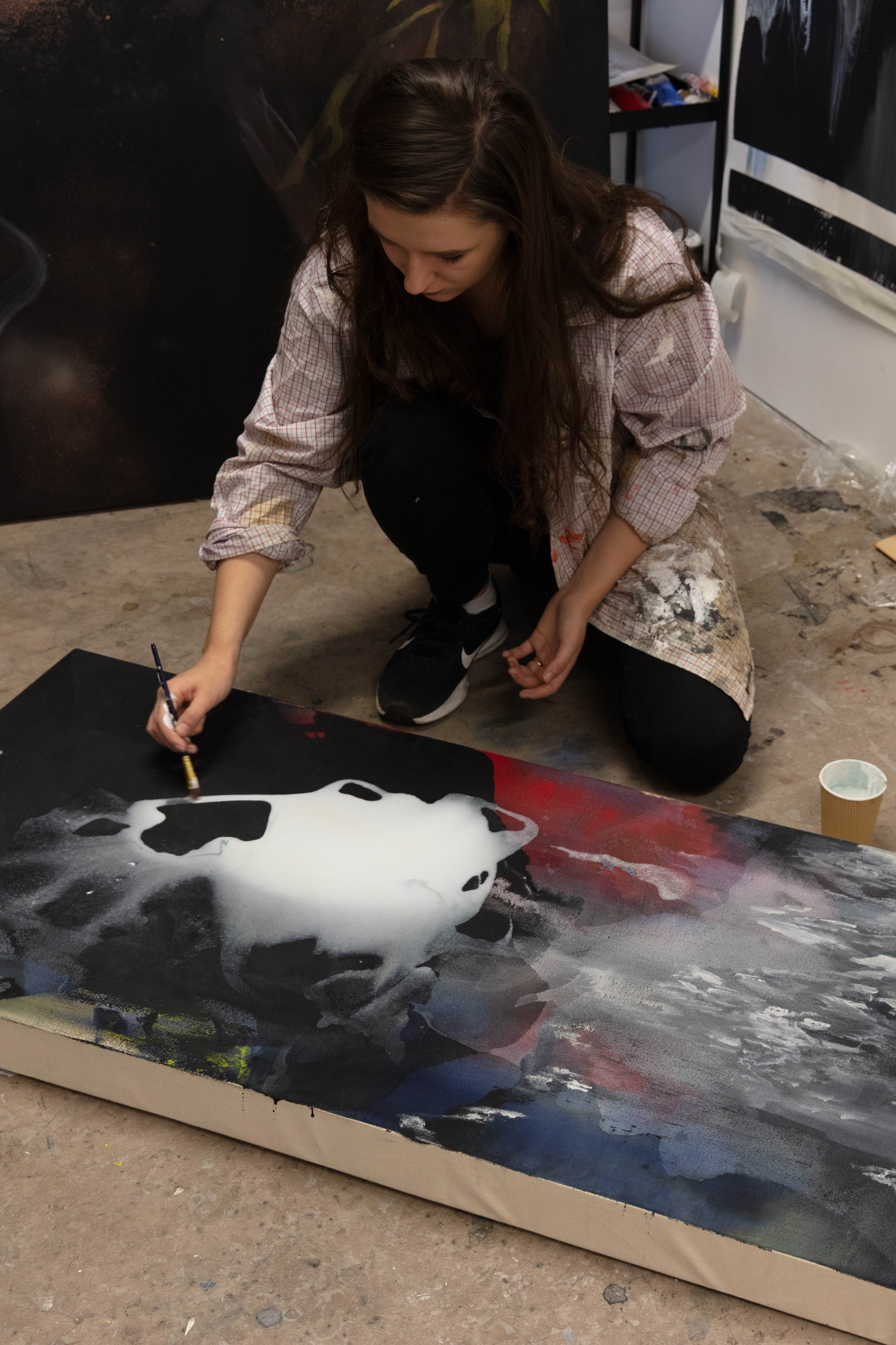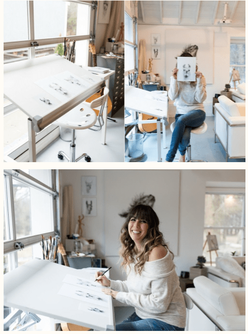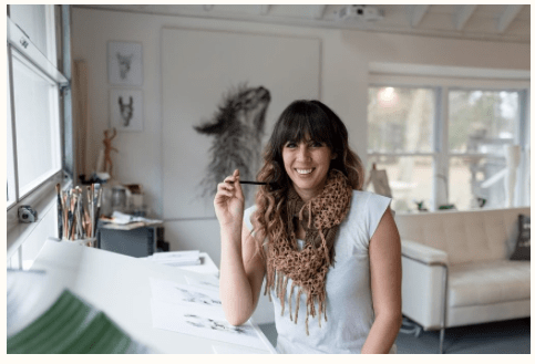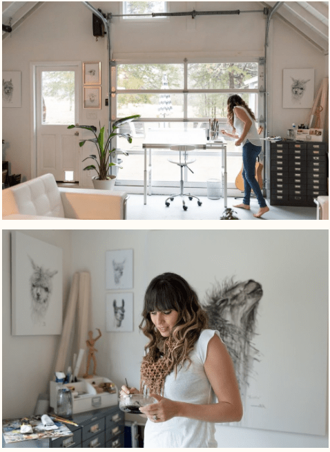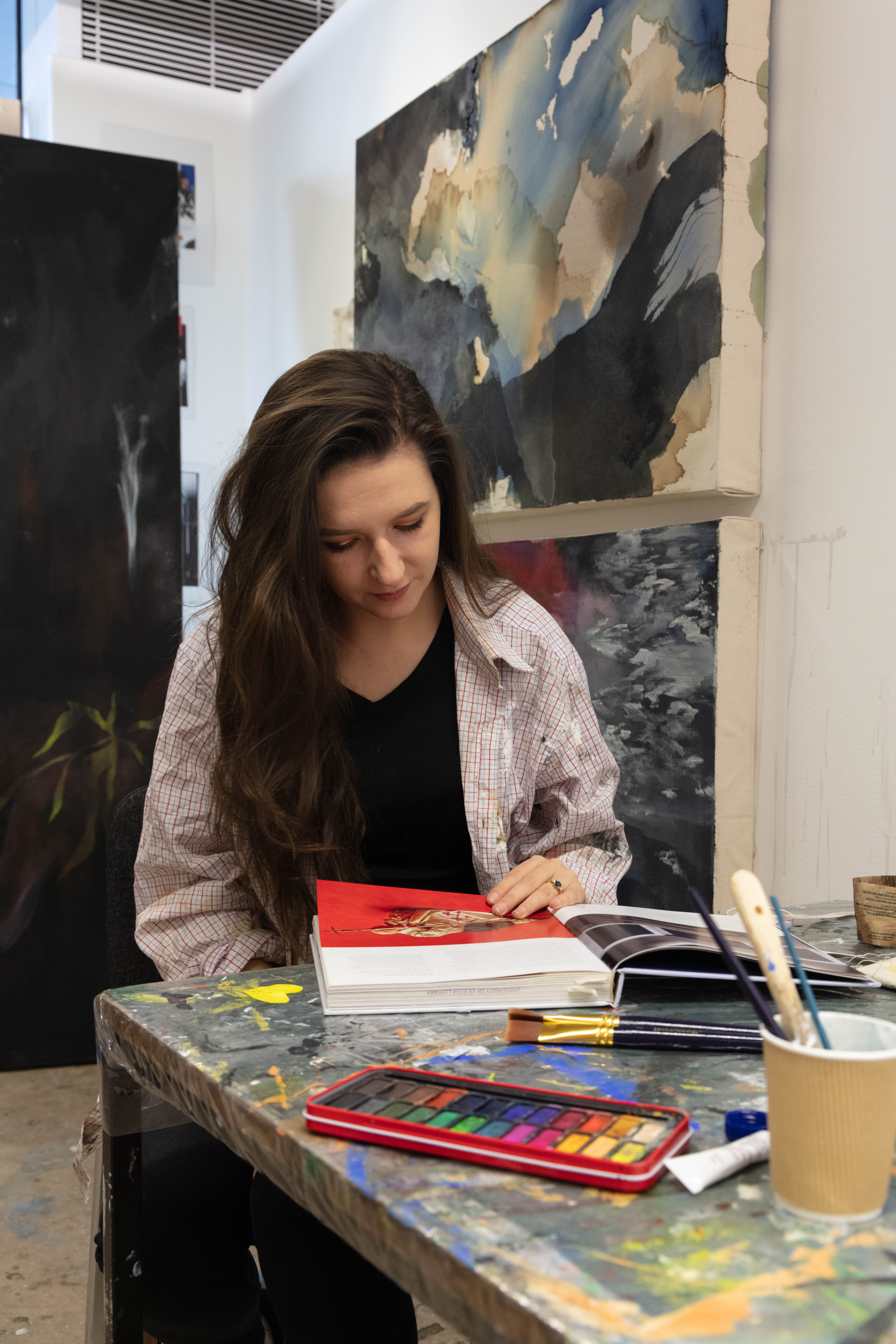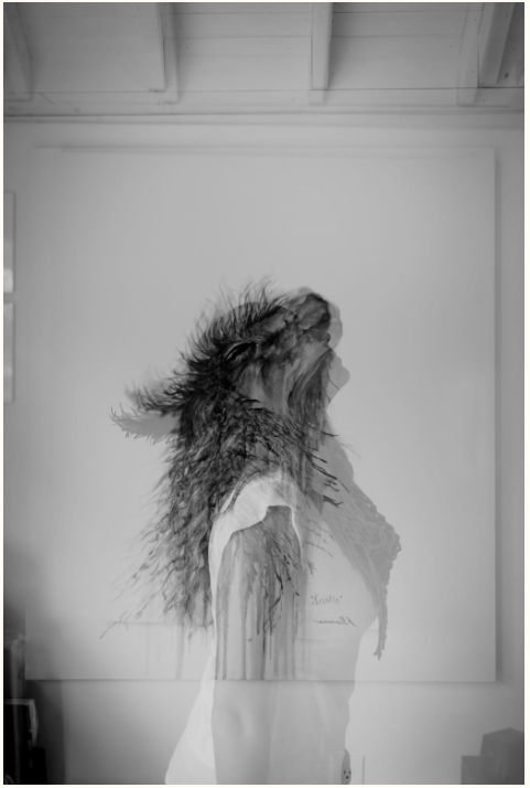 For Amy I decided to pick these two images as I feel that they work really well together. They show her environment – studio place but also the outcome of her work – portrait against the work. I decided to have the two images beside each other as i couldn’t find one image that would’ve spoke that much as those two. One image wouldn’t be a successful way of showing her as fine art artist in my opinion anyway.