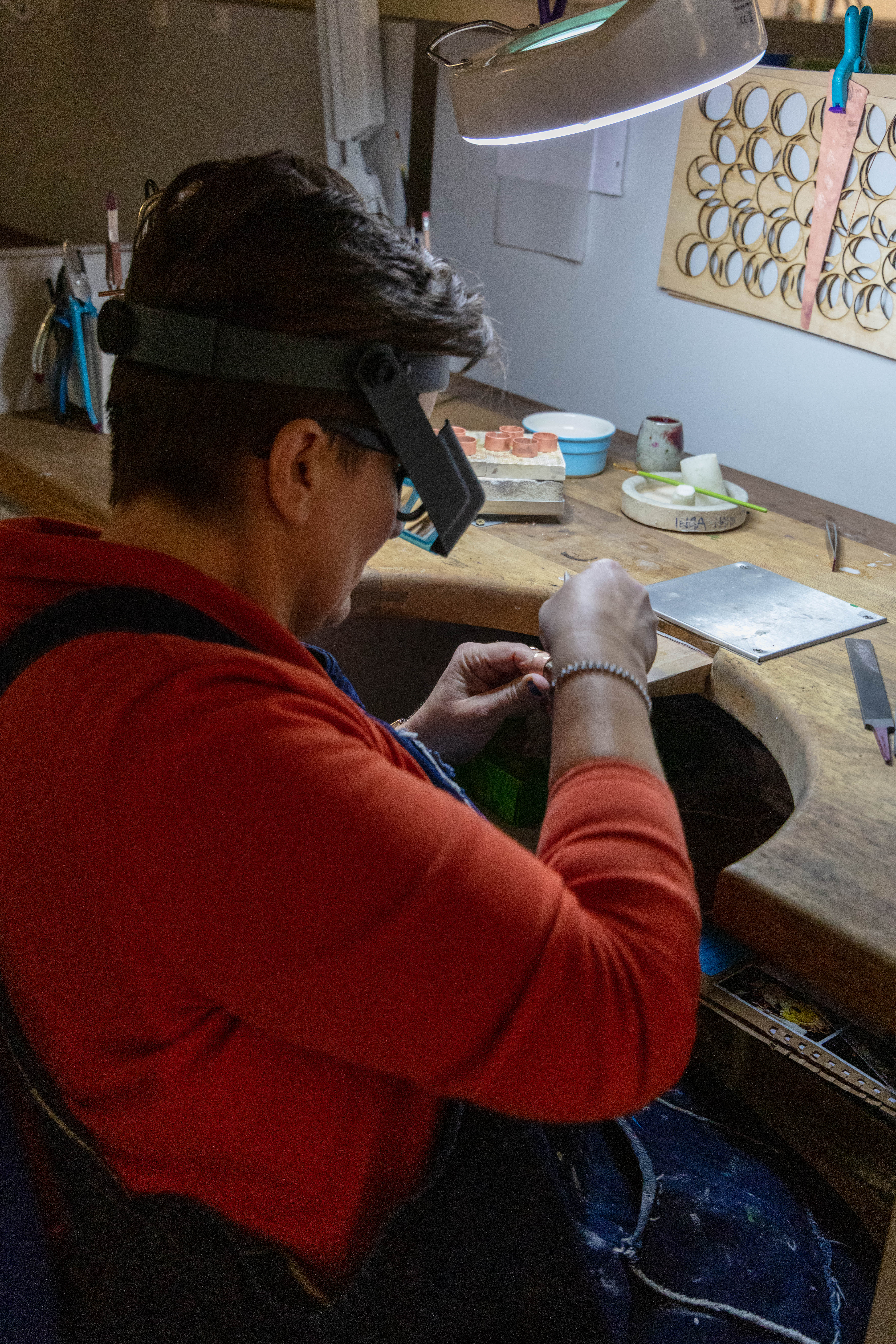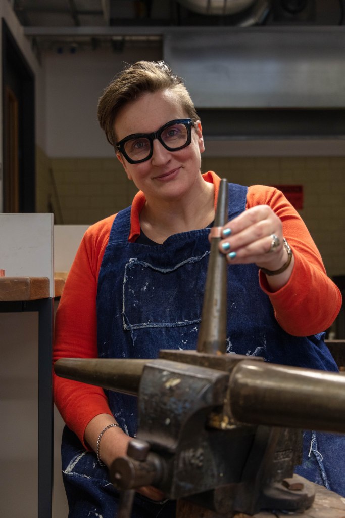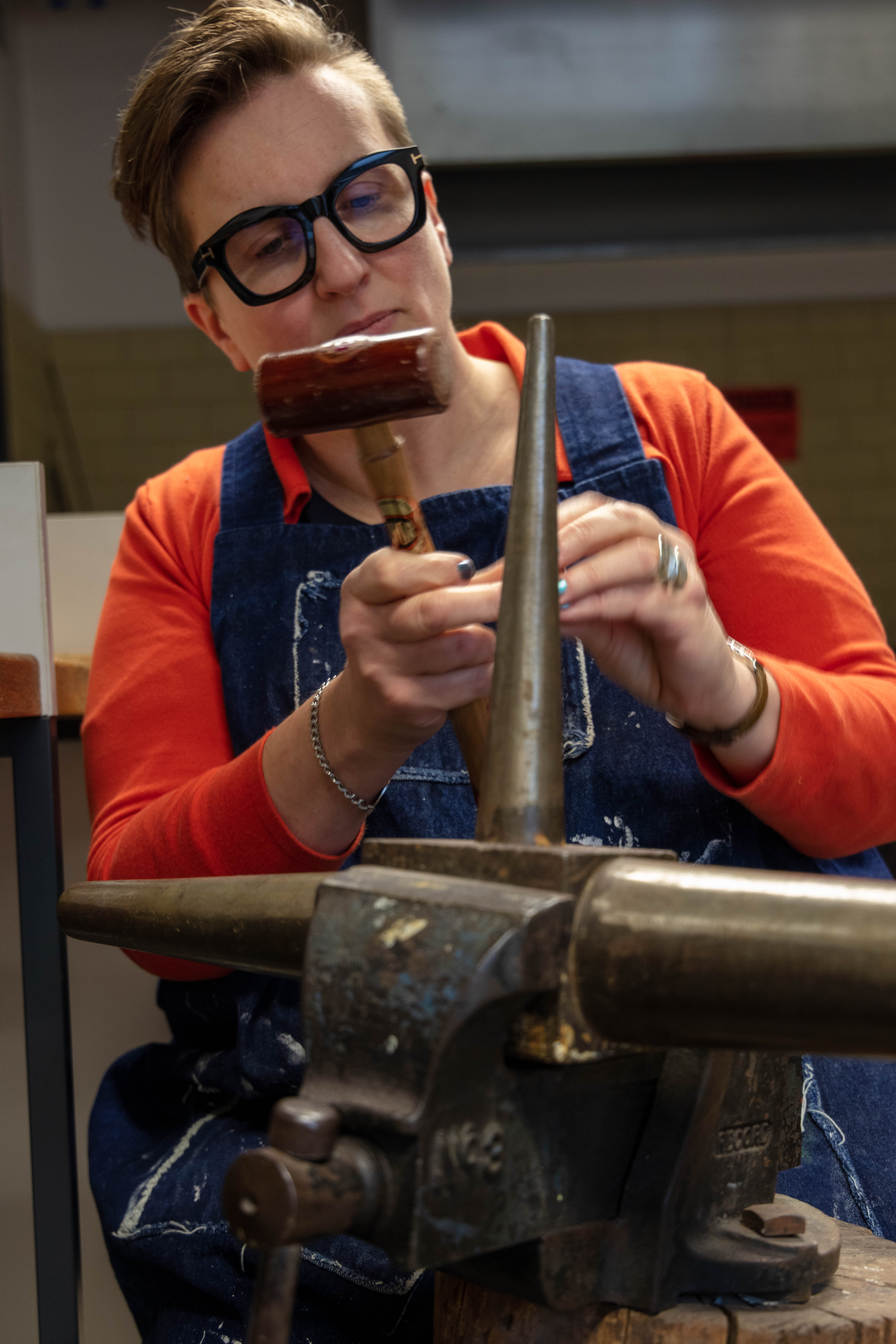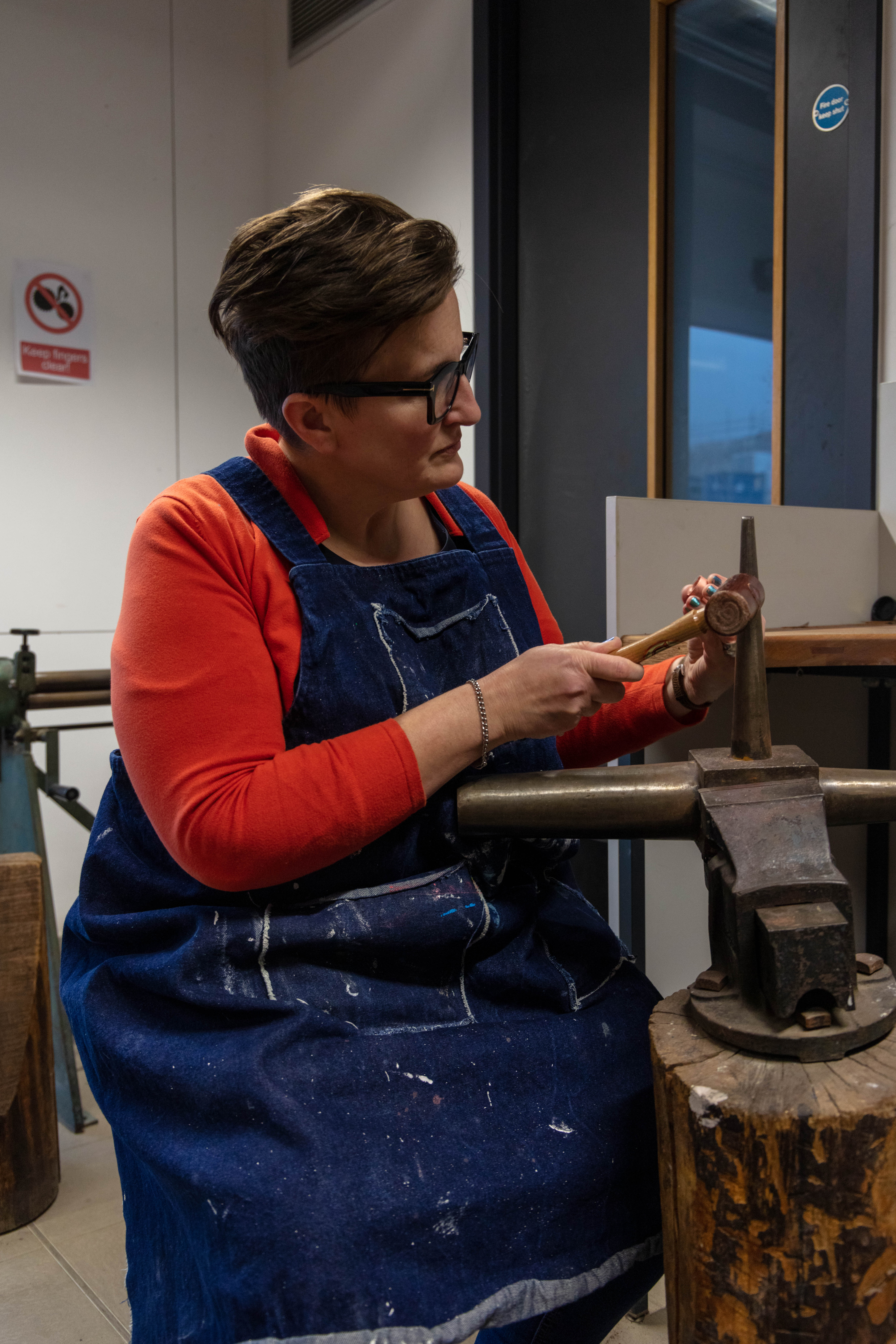 Taking photographs and thinking about everything that i read about improving the environmental portraits. While having that in the back of my mind i started to do my shoot. Unfortunately the work that Matthew was working on was mostly drawing as he had to plan out what he was going to do but also how to use copper without wasting the material- this included sketches, measurement, cutting out the shapes out of paper and see if he would be able to form it into the shape he had planned. I didn’t included this images down below as i didn’t like them – the composition was off, i couldn’t find the best angle that would work as his working desk is quite close to his class mates which made it little bit hard especially since they were there trying to work and asking them to move nicely wasn’t an option as i was got told i will not be moving or you can come back at a time where he would be alone in the room. I understand that i could face difficulties like these but i just didn’t expect it. I overcame it as I was able to convince Matthew to do something else for me to get the images and then he could get on with his work.