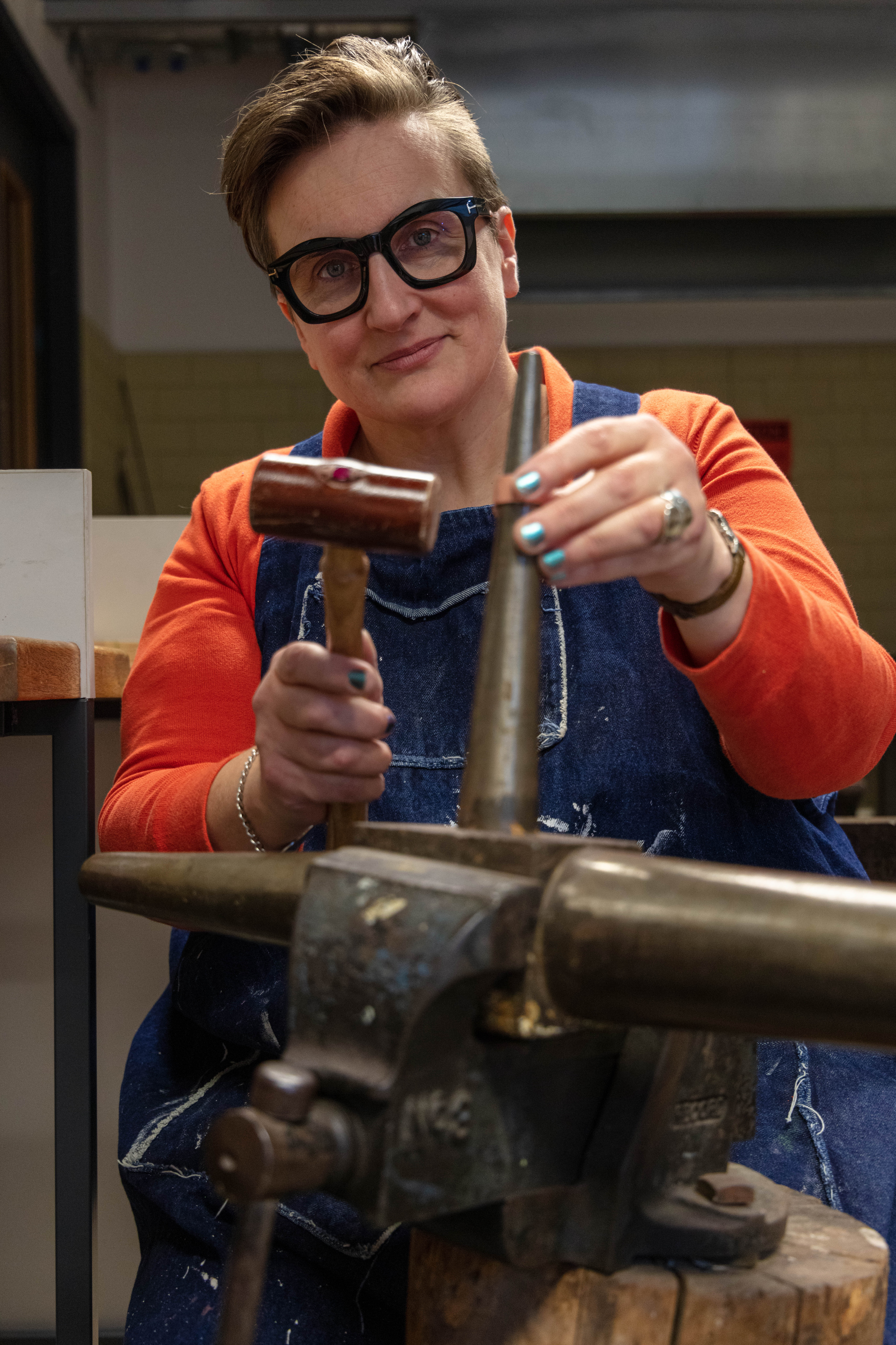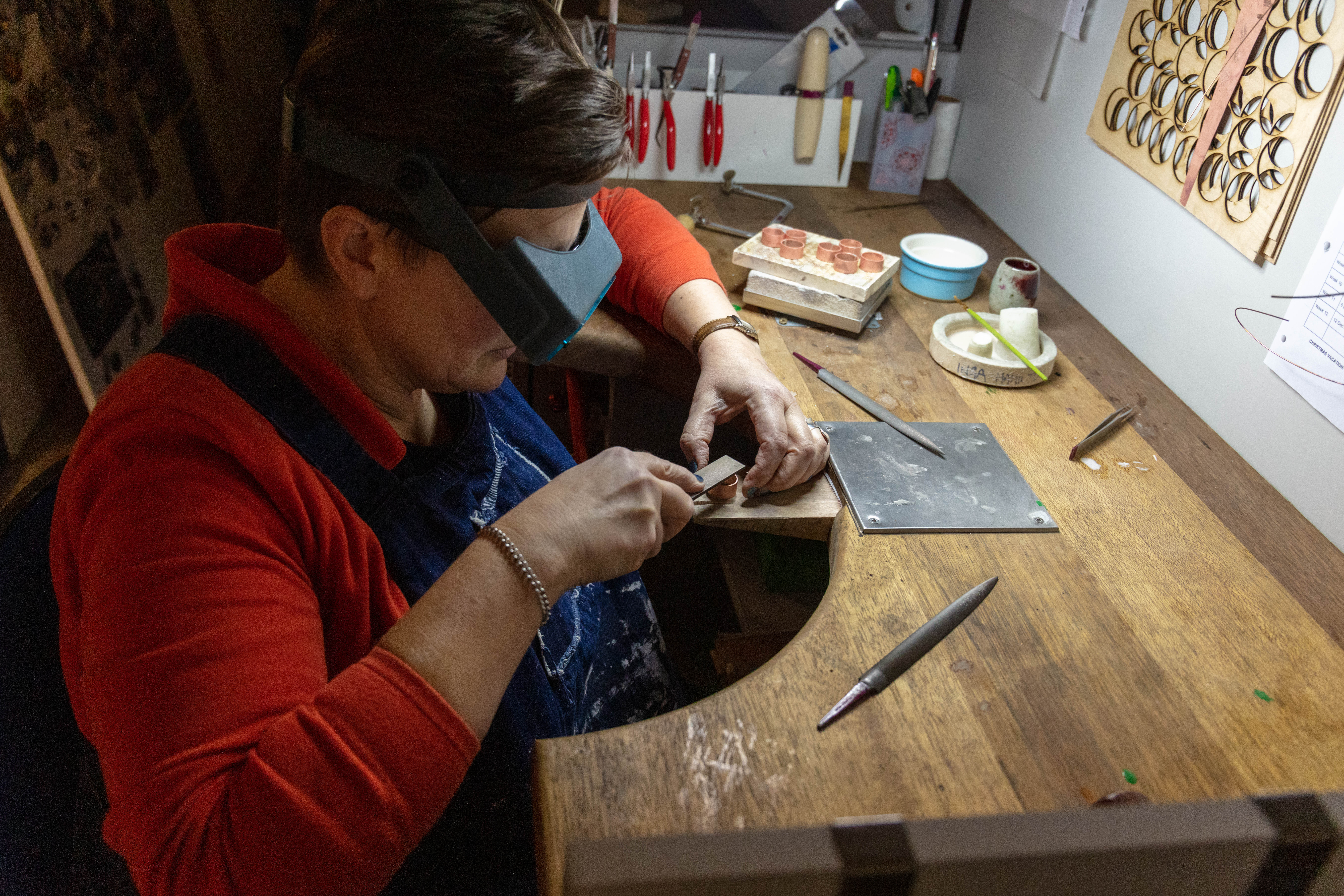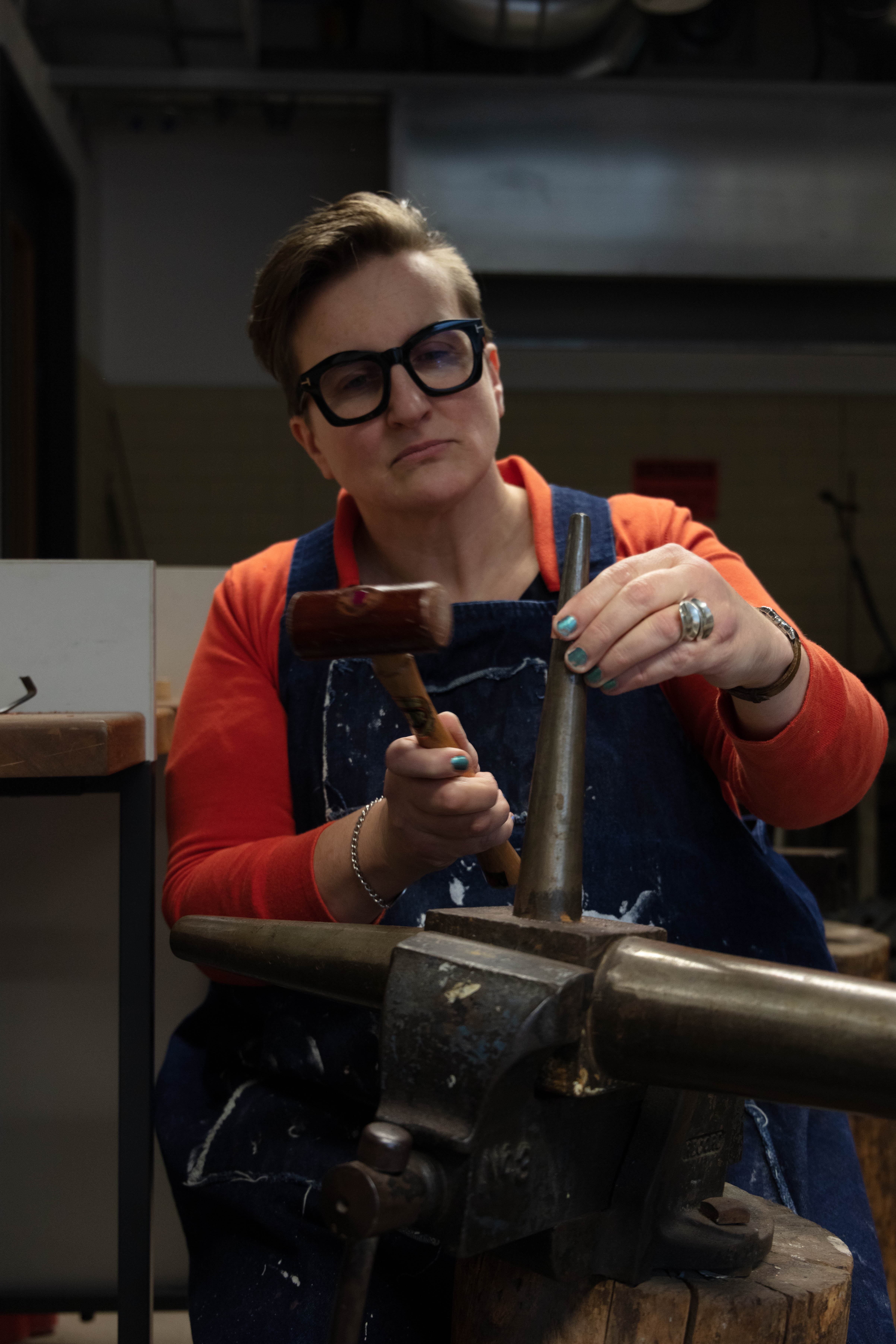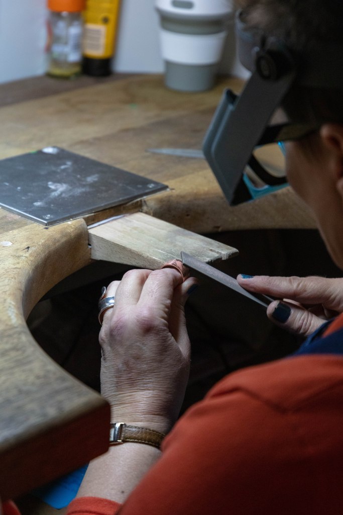Taking photographs and thinking about everything that i read about improving the environmental portraits. While having that in the back of my mind i started to do my shoot. Unfortunately the work that Matthew was working on was mostly drawing as he had to plan out what he was going to do but also how to use copper without wasting the material- this included sketches, measurement, cutting out the shapes out of paper and see if he would be able to form it into the shape he had planned. I didn’t included this images down below as i didn’t like them – the composition was off, i couldn’t find the best angle that would work as his working desk is quite close to his class mates which made it little bit hard especially since they were there trying to work and asking them to move nicely wasn’t an option as i was got told i will not be moving or you can come back at a time where he would be alone in the room. I understand that i could face difficulties like these but i just didn’t expect it. I overcame it as I was able to convince Matthew to do something else for me to get the images and then he could get on with his work.
